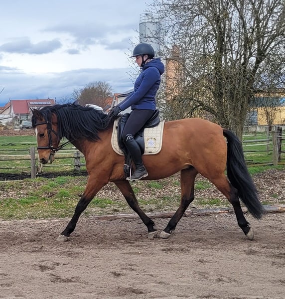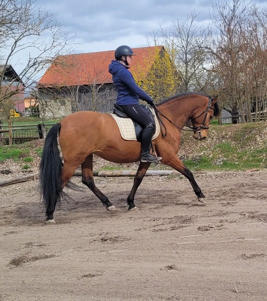 MARINO is a stunning Cruzado gelding of exceptional quality. He is very calm and has a perfectly balanced temperament. MARINO is very people-oriented and prefers to seek his humans' company rather than that of his fellow horses, although he gets along excellently with others. MARINO is a true all-rounder. Whether in the arena, on the trail, in the dressage ring, or on the all-weather surface, MARINO is always attentive, focused, and experienced. Groundwork and work with children and young riders are also highly suited to him. Thanks to his innate calmness and serenity, you quickly feel very comfortable and secure with him. He is very comfortable to sit and easy to ride. MARINO is ideal for reiners returning to riding or for riders transitioning from ponies to horses. Even experienced riders will enjoy working with this handsome boy, especially in dressage. MARINO is an all-rounder, a kind-hearted horse that brings a lot of joy and fun to his rider. For more information about our horses and our work, please visit www.ps-seitle.de or specifically at: http://pferdesport-seitle.blogspot.com/?m=1 We are happy to answer calls or WhatsApp messages at the following numbers: 0171/5269002 Hubert Seitle 0151/12775701 Uta Großmann THERA-PFERDE PferdeSport Seitle in the Donaumoos