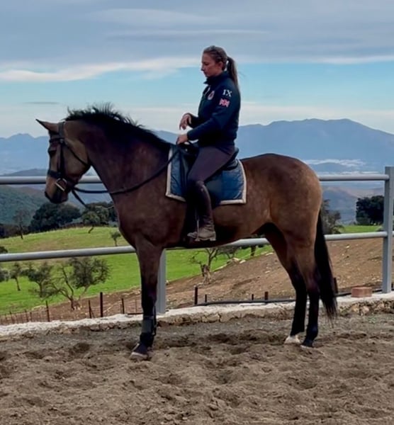 Andalusian gelding, buckskin, born 2020 and ap. 161 cm. "Snickers" is the perfect horse for the rider that wants to do a bit of everything, he has a good rideability and correct movements for dressage, safe and "bomb proof" for hacking and a great mentality to try other activities (WE, show jumping etc.). A positive horse that does everything with a great attitude and his ears forward. Easy to handle and likes attention. Used to go to Ferias and Romerias here in Spain, good with traffic and new environments. He's located in southern Spain and we help with all the steps in the buying process. Read more about us at www.cthorsesales.com Contact: info@cthorsesales.com