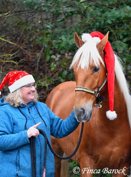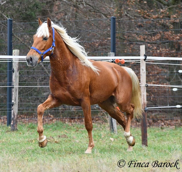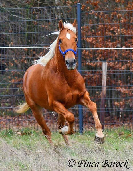 Breed: Andalusian Name: Yucatan Gender: Gelding Height: 15.6 hh (156 cm) Date of Birth: February 1, 2020 Color: Palomino Price: €9,900 Sire: Unknown Dam: Unknown Yucatan, our compact, friendly boy with a blonde coat. He is affectionate and alert in handling, and enjoys spending time with his human. Yucatan has been extensively ridden in the field and feels completely at ease there. He is used to both riding alone and in groups, exploring the terrain confidently. He has a lovely, expressive walk with good ground coverage and holds his own well alongside larger horses. He is familiar with traffic, dogs, and cyclists. He also handles younger horses well and confidently passes unfamiliar objects without hesitation. In the arena, he knows the basics and is being further trained by us. Yucatan prefers a rider who doesn’t push too hard; he tends to stop if pressured too much. With normal aids, he moves forward willingly. He is comfortable sitting and enjoys working actively. His uphill canter is particularly noteworthy. Besides riding, Yucatan loves free lunging work. He also enjoys circus-like exercises and shows great willingness to learn. He has quickly learned to lie down and we have also started working on Spanish steps. A wonderful boy with a lot of charisma and an excellent character, showing great versatility and enthusiasm for new tasks. Includes veterinary examination and X-ray images. Contact: Finca Barock, Tel. 0173-696 31 81, 56291 Wiebelsheim