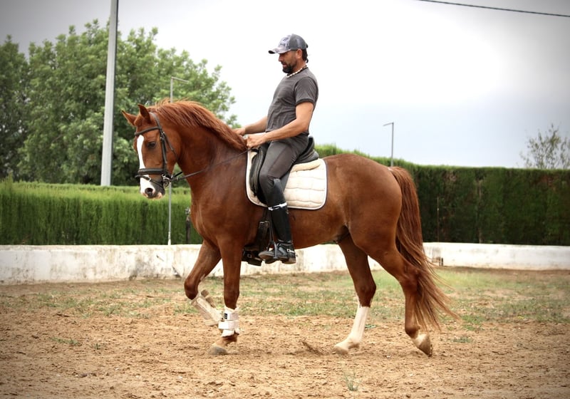 This stylish young chestnut gelding is a real eye-catcher! DALI has everything a true Spanish dream horse should have: a great neck, a baroque build, and plenty of mane and tail (the thick mane is unfortunately currently shortened). DALI is ridden in the GGA in the arena with a water snaffle and has a lot of experience in the field. He has a friendly, open character and is well-behaved and reliable under the rider. He is now ready to find his new home and become a true friend for life! DALI has a Spanish equine passport without proof of lineage. Location: Spain.