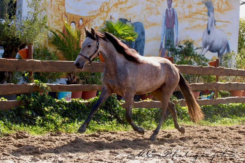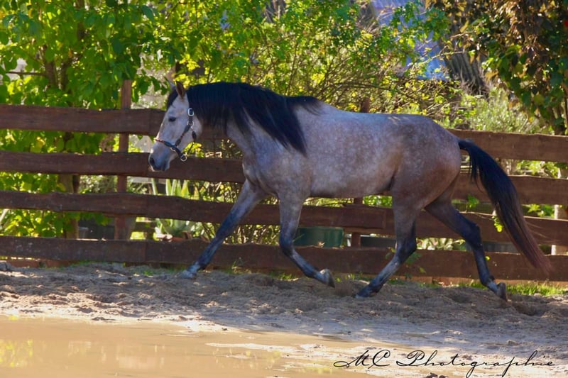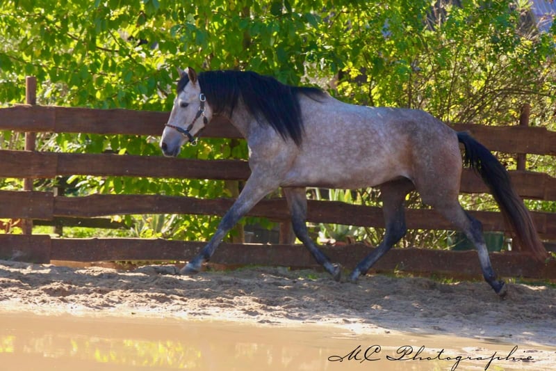 **Annonce de vente : Hongre andalou - Partenaire idéal pour les loisirs**. Nous proposons à la vente un magnifique hongre andalou, né en 2020. Cet impressionnant cheval gris-rouge ne séduit pas seulement par sa robe remarquable, mais aussi par son caractère amical et sa polyvalence. Avec une taille de 160 cm au garrot, il a la taille idéale pour un partenaire de loisirs qui fait bonne figure aussi bien en extérieur que sur le terrain. Il est bien équilibré et se montre toujours prêt à apprendre et motivé. Débourré selon son âge. Ce hongre convient parfaitement aux cavaliers de loisir. Si vous êtes à la recherche d'un partenaire fidèle pour vos activités de loisirs, qui vous donnera beaucoup de plaisir grâce à son caractère charmant, ce hongre andalou est fait pour vous. Je me tiens à votre disposition si vous êtes intéressés ou si vous avez d'autres questions. Une visite et une préparation d'essai sont possibles sur rendez-vous.