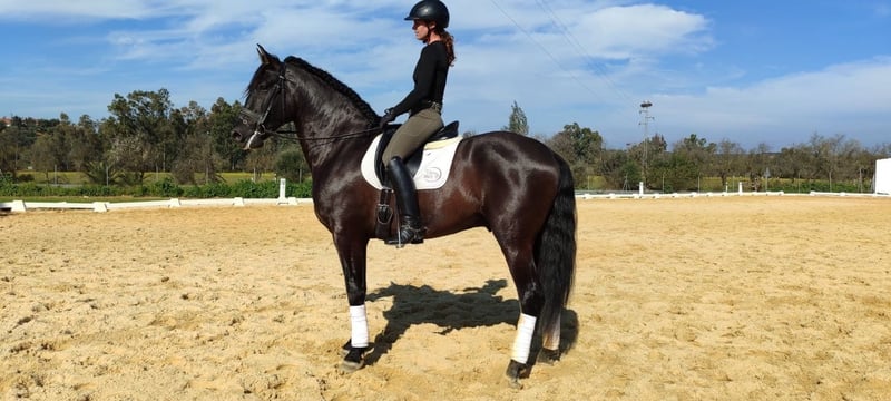 Splendido stallone purosangue PRE di 5 anni e alto 16.3hh. Ha un temperamento super, un occhio molto gentile, ed è facile da gestire in qualsiasi situazione. Ha 3 andature consolidate nel lavoro in piano e ora si sta allenando per salire di livello, è molto disponibile. Diventerà un ottimo prospetto per il dressage. Non presenta comportamenti da stallone, è abituato a stare in un maneggio con altri cavalli e in arena con altri cavalli. Tutto è disponibile per essere visionato e provato se puoi recarti nel maneggio. Gli acquirenti interessati devono inviarci un video delle loro capacità di equitazione tramite WhatsApp al numero 00353879297498 in modo che possiamo valutare l'idoneità. Situato in Spagna. Spedizione in tutto il mondo disponibile, contattaci per un preventivo.