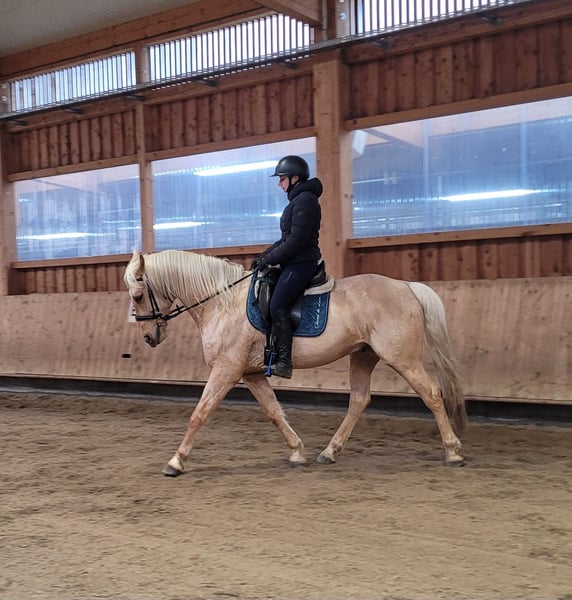 SOLO ist ein wunderschöner Cruzado Wallach der Extraklasse. SOLO ist sehr ruhig im Umgang und hat ein völlig ausgeglichenes Gemüt. SOLO ist sehr menschenbezogen und orientiert sich lieber nach seinem Menschen als nach seinen Artgenossen, mit denen er sich aber auch hervorragend versteht. SOLO ist ein absoluter Allrounder. Ob im Gelände, Halle, Dressurviereck oder Allwetterplatz, SOLO ist immer sehr aufmerksam, konzentriert und routiniert bei der Sache. Bodenarbeit und die Arbeit mit Kindern und Jugendlichen steht bei SOLO ebenfalls hoch im Kurs. Durch seine von Gott gegebene Ruhe und Gelassenheit, fühlt man sich sehr schnell sehr gut bei ihm aufgehoben. Er ist sehr bequem zu sitzen und auch leichtrittig. SOLO verzeiht Reitfehler und passt sich seinem Reiter an. SOLO empfiehlt sich für den Wiedereinsteiger, den noch etwas ungeübten Reiter oder für den Umsteiger vom Pony zum Pferd. Wobei auch der routinierte Reiter seinen Spaß mit diesem Prachtburschen haben wird, denn SOLO empfiehlt sich besonders auch für das Dressurviereck. SOLO ist ein Allrounder, ein herzensgutes Pferd, das sehr viel Freude und Spaß macht. Weitere Informationen über unsere Pferde und unsere Arbeit erhältst du unter ww.ps-seitle.de oder speziell unter: http://pferdesport-seitle.blogspot.com/?m=1 gerne auch telefonisch oder per WhatsApp unter den Telefonnummern 0171/5269002 Hubert Seitle 0151/12775701 Uta Großmann THERA-PFERDE PferdeSport Seitle im DONAUMOOS