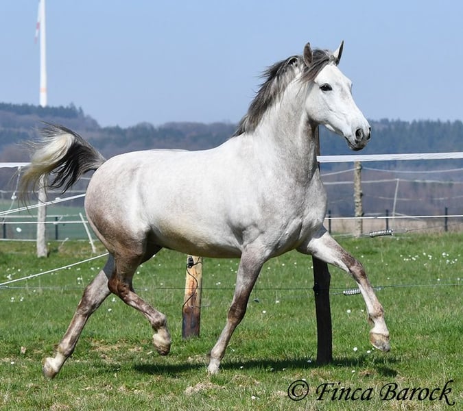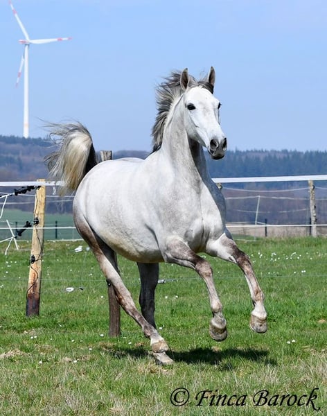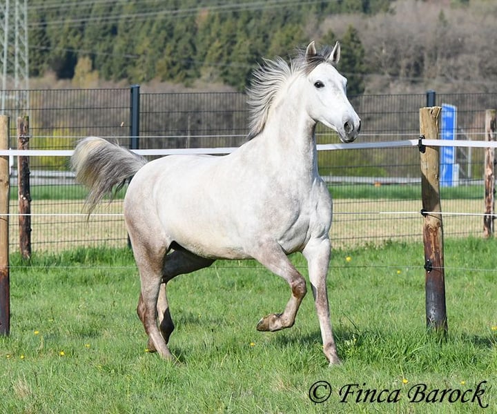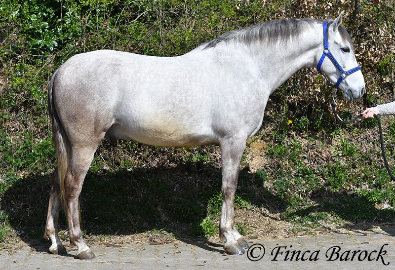 Rasse: Andalusier Name: Alioli Geschlecht: Wallach Stockmaß: 160 cm Alter: 10.07.2019 Farbe: Schimmel Preis: 12500 € Vater: o. P. Mutter: o. P. Alioli ist ein kompakter Bub und ein absoluter Schmusebär. Er liebt lange Krauleinheiten und ist sehr personenbezogen. Mal eben Heu füttern in seiner Box endet in der Regel in einer Schmuseeinheit. Alioli ist solide in den GGA geritten und hat eine gute Bacis. Er kennt auch schon Schenkelweichen und Schulterherein. Im Gelände zeigt er sich aufmerksam und neugierig. Neue Sachen sind daraus mal kurz gruselig, er lässt sich aber leicht überzeugen diese kennen zu lernen. Sobald sein Reiter ihm Sicherheit vermittelt, nimmt er dies gut an. Hervorzuheben sind seine sehr sitzbequem Bewegungen mit denen er seinen Reiter sofort ein Lächeln ins Gesicht zaubert. Durch seine rahmige Statur deckt er auch gut größere Reiter gut ab. Ein toller Partner für alle die einen kompakten, leichtrittigen Andalusier suchen der dazu noch eine absolute Schmusebacke ist <3 inkl. klinischer Untersuchung und Röntgenbildern Kontakt: Finca Barock, Tel. 0173-696 31 81, 56291 Wiebelsheim