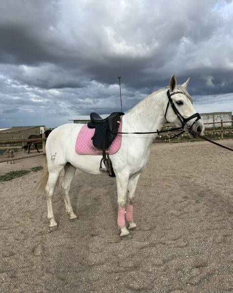 For sale, PRE mare, with magnificent origins. All papers are in order. She is 7 years old, stands at 1.60 cm, and has a dapple gray coat. She is clean with no melanomas or injuries. Dewormed, vaccinated, teeth done, and all care up to date. This mare is for experienced riders, not suitable for beginners. The mare has participated in the "rocío" several times, as well as in cattle drives and pilgrimages... Veterinary checks are accepted.