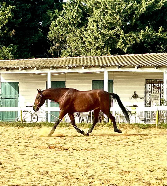 Beau Hongre Espagnol qui prend 8 ans en 2026. Caractere calme, gentil avec les autres chevaux. Mathias montre une belle locomotion et n'est pas regardant en exterieur. Bien aux 3 allures et sur les transitions, mouvements lateraux de base epaules en dedans et cessions. Un cheval pour nouer une relation de confiance et profiter de beaux moments en exterieur et/ou Equitation de travail.