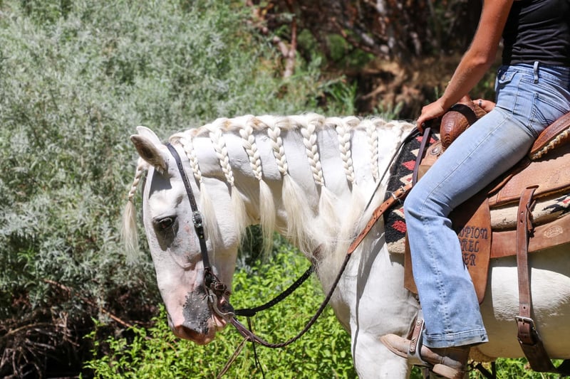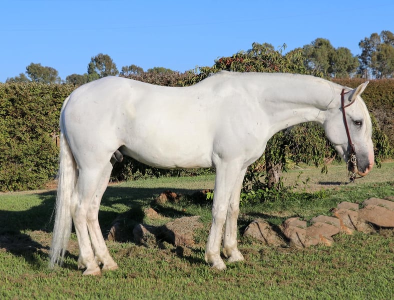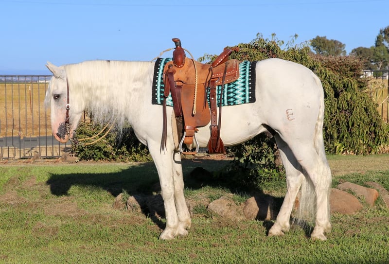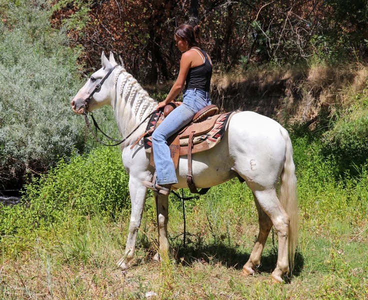 ONLINE AUCTION Place your bids at www.PlatinumEquineAuction.com Starting Bid $3500 Auction ends September 8th, 2024 Need a new saddle? Check out White Rock Saddles on our website or Facebook! Has anyone wanted an all white horse to have there real life unicorn…Meet Fabio 7 year old 15.1 hand Appaloosa Andalusian the prettiest boy you’ll ever see. With a full thick mane, tail, and forelock you’ll be sure to be noticed wherever you take him. Fabio is nothing short of a looker with a great brain. He’s been fantastic to own and sure if a sweet boy he will be the first to nicker at you when he sees you wether in his pasture or tied up he’s always happy to see you and loves to get kisses. He sure is a puppy dog and absolutely loves to be groomed and braided he practically falls asleep. He’s like a pampered king. Fabio is very broke and is an absolute beautiful mover. He’s pretty much dabbled in everything. Fabio has been on the ranch before gathering cows and roping calves in the fields. He is a mountain goat and a dozer all in one he climbs anything and goes all day long with no quit. He is also a dream to ride in the arena with his very pretty moves which makes him smooth as a cloud to ride. He knows his leads, has an easy stop, backs up, collects his head, side passes, does diagonals, moves off the legs. Fabio has been ridden English and looks absolutely beautiful doing it. He has been started over jumps and has taken to it very well. I think he could really excel in the hunter jumpers. He is also great on the trails with going up and down steep hills, creeks, ponds, logs you name it. Fabio has also been to the obstacle courses and has done very well and has crossed everything we have asked him to including teeter totter bridges, streamers, swaying bridges, mattresses, etc. Now Fabio is bred to be a big moving horse and to have big moments so I would t suggest him for a beginner just because he moves very big maybe an intermediate and up. He has no bad habits and no vices. He picks up all 4 feet with ease, stands to be groomed, bathed, saddled. So easy to load up in the trailer. He is good with other horses and good in stall or pasture. Fabio is ready to hit the trails or the show ring. Please feel free to contact us at KW Ranch and Performance Horses at 530-852-2032 for more info or any questions on Fabio. Located in Pleasant Grove, CA. ONLINE AUCTION Place your bids at www.PlatinumEquineAuction.com Starting Bid $3500 Auction ends September 8th, 2024 Need a new saddle? Check out White Rock Saddles on our website or Facebook!