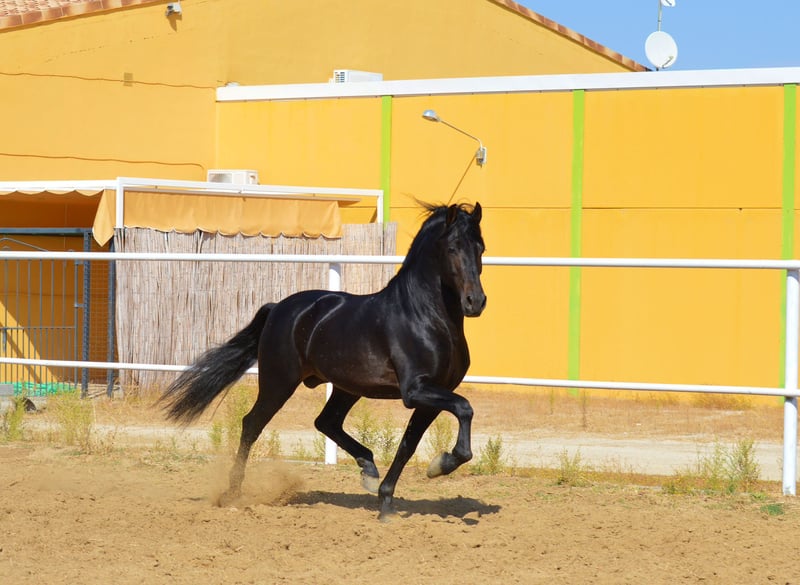Some horses captivate — this one enchants. This extraordinary Andalusian stallion embodies everything one could wish for in a dream horse: a proud, baroque appearance, a gentle heart, and an aura full of calmness. Character & Temperament: A true gentleman — very kind and soft. Gentle, sensitive, and always eager to please his handler. He approaches everyone with respect and trust — a partner who touches both heart and mind. Trail-safe: Fearless, calm, and dependable — whether in the terrain, through forests, or along roads. A horse that provides security and exudes pure serenity. Baroque strength meets Spanish elegance: His powerful build, shiny coat, and proud posture make him a true eye-catcher. Yet, his true beauty lies in his inner calm and noble demeanor. A horse for people with heart and style. For those who recognize and appreciate the extraordinary.