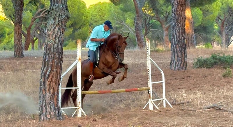 DATOS CLAVE Nombre: Bastón de Torreluna Edad: 10–11 años Sexo: Entero DOMA Y RENDIMIENTO Nivel: Alta Escuela Passage de nivel superior: Con gran elevación, ritmo y una cadencia espectacular que impone en pista. Piaffe magistral: Destaca por su potencia, perfecto equilibrio y gran expresión en cada movimiento. Salto entrenado y destacado: Formado en salto, afronta los obstáculos con seguridad y confianza, demostrando técnica, capacidad y agilidad. MORFOLOGÍA Y CARÁCTER Ejemplar fuerte y armónico, con una estructura ideal para el alto nivel. Su cuello poderoso, dorso firme y posteriores activos le aportan una presencia que cautiva a cualquier espectador. Posee un carácter noble y equilibrado, con una actitud impecable hacia el trabajo. Es un caballo fiable, completamente hecho y muy disfrutable para jinetes exigentes. GRAN SEMENTAL Aprobado como reproductor, ha sido utilizado como semental con resultados sobresalientes. Ha producido descendencia de gran calidad, excelente funcionalidad y buen carácter, confirmando su alto valor genético.