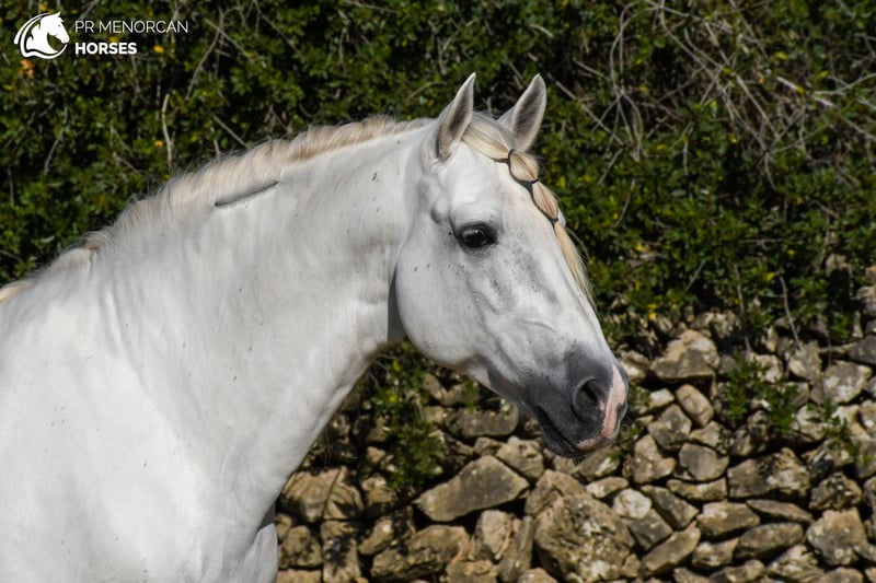 Deze indrukwekkende witte PRE-ruin, geregistreerd bij ANCCE en geboren in 2013, valt op door zijn natuurlijke elegantie, klassieke uitstraling en expressieve beweging die niet onopgemerkt blijft. Met een schofthoogte van 1,62 m beschikt hij over een uitgebalanceerde en functionele bouw, perfect voor wie op zoek is naar een veelzijdige partner voor dressuur of de menorquín-dressuur. Hij is de zoon van de bekende hengst Armas Felino en zijn grootvader aan moederskant is een REPRODUCTIE-VERBETERDE hengst. Hij beschikt over een solide middelmatig dressuurniveau, werkt met gemak in stap, draf en galop, en voert correct zijgangen en de Spaanse pas uit. In menorquín-dressuur voert hij de 'bot' uit, waardoor hij een uitstekende keuze is voor zowel de piste als voor shows en demonstraties. Met een nobele, gevoelige en coöperatieve aard is hij een paard dat sterk verbonden is met zijn ruiter. Hij heeft een natuurlijke sensitiviteit die, in plaats van een nadeel te zijn, hem bijzonder ontvankelijk maakt voor een ruiter met tact en zachtheid, waarmee hij een diepe, op vertrouwen gebaseerde relatie kan ontwikkelen. Hij is gewend om in een stal te leven samen met andere paarden, merries en hengsten, en gaat regelmatig solo of in gezelschap uit, zowel op de piste als in het veld. Hij wordt graag gezelschap gehouden door andere paarden, maar blijft altijd respectvol en onder controle. Het paard wordt ontwormd geleverd en bevindt zich in Menorca. Wij kunnen het volledige verkoopproces verzorgen, inclusief veterinaire keuring, documentatie en internationaal transport naar zijn nieuwe thuis. 📩 Neem contact met ons op voor meer informatie, foto’s en video’s. We helpen u graag!