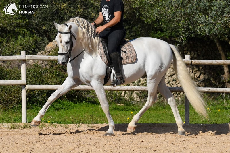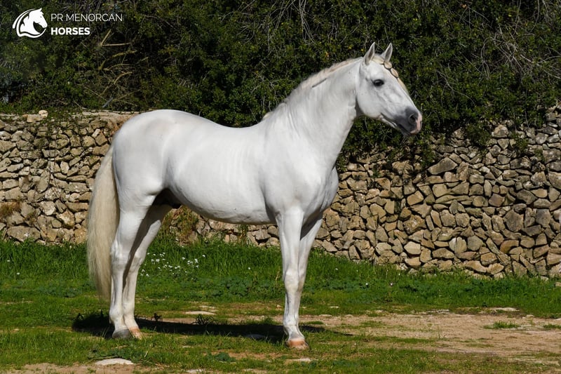 Dieser beeindruckende weiße PRE-Hengst, registriert bei ANCCE und geboren im Jahr 2013, besticht durch seine natürliche Eleganz, seine klassische Erscheinung und einen ausdrucksstarken Bewegungsablauf, der sofort ins Auge fällt. Mit einer Schulterhöhe von 1,62 m verfügt er über eine ausgeglichene und funktionale Konstitution, ideal für Reiter, die einen vielseitigen Partner für Dressur oder kleinere Disziplinen suchen. Er ist Sohn des bekannten Hengstes Armas Felino und hat in der mütterlichen Linie einen Grand Prix-Reiter. Sein Ausbildungsstand ist auf mittlerem Niveau gefestigt: Er arbeitet mühelos in Schritt, Trab und Galopp, führt seitliche Bewegungen sowie den spanischen Schritt korrekt aus. Im menorquinischen Reiten zeigt er den Bot, was ihn zu einer hervorragenden Wahl für die Bahn, Shows oder Vorführungen macht. Mit einem edlen, sensiblen und kooperativen Charakter ist er sehr eng mit seinem Reiter verbunden. Seine natürliche Sensibilität ist kein Nachteil, sondern macht ihn besonders empfänglich für einen feinfühligen Reiter, mit dem er eine tiefe Vertrauensbeziehung aufbauen kann. Er ist an das Leben in Boxen gewöhnt, lebt gemeinsam mit anderen Pferden, Stuten und Hengsten, und bewegt sich regelmäßig allein oder in Gesellschaft, sowohl auf der Bahn als auch im Gelände. Er zeigt sich in der Gruppe lebhaft, bleibt aber stets respektvoll und gut kontrollierbar. Das Pferd wird entwurmt abgegeben und befindet sich in Menorca. Wir übernehmen den gesamten Verkaufsprozess, inklusive veterinärmedizinischer Untersuchung, Dokumentation und internationalem Transport bis zu seinem neuen Zuhause. 📩 Kontaktieren Sie uns für weitere Informationen, Fotos und Videos. Wir freuen uns, Ihnen behilflich sein zu dürfen!