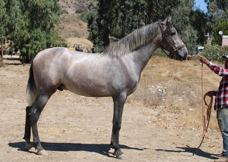 Name: CLAVE 7 Foal Date: 04/24/2023 Breed: Andalusian Gender: Stallion Color: Grey Temperament 1 / 10 Registry: IALHA Lineage: Elegante VII x Victoria Height: 16hh Discipline: Not Under Saddle Price: $12,000 Location: Canyon Country, California Contact: Caballos Jesus Herrera (818)335-2735 Website: https://caballosjesusherrera.com/clave-7/ Video: https://www.youtube.com/playlist?list=PLo0ypSQXXCuyoB3KNUkQpO0qwCJlImiLL COMMENTS: He has exceptional ground manners, calm disposition, sweet, smart and is very people oriented. Has been handled since birth with all the basic groundwork, halter broke, leads, ties or cross ties quietly and stands patiently for full bath. He is easy to walk, fabulous movements for dressage and correct conformation. Horse transportation can be arranged!!!