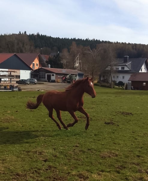 Zu verkaufen steht dieser spanische Rohdiamant. Er ist super lieb und verschmust im Umgang, kennt Longenarbeit, Spaziergänge und war auch schon öfters als Handpferd bei einem älteren Wallach dabei. Hierbei zeigte er sich äußerst unerschrocken und lernwillig. Er wächst mit einem gleichaltrigen Junghengst ganzjährig auf einer Weide mit Unterstand auf. Er ist Schmiede- und Verladefromm. Mit seinen ca 150cm steht er noch voll im Wachstum, geschätztes Endmaß zwischen 155cm bis 160cm. Leider fehlt mir die Zeit ihn weiter Auszubilden, sicherlich wird er ein cooler Allrounder egal ob für Wanderritte, Working Equitation oder einfach nur als Freizeitpferd.