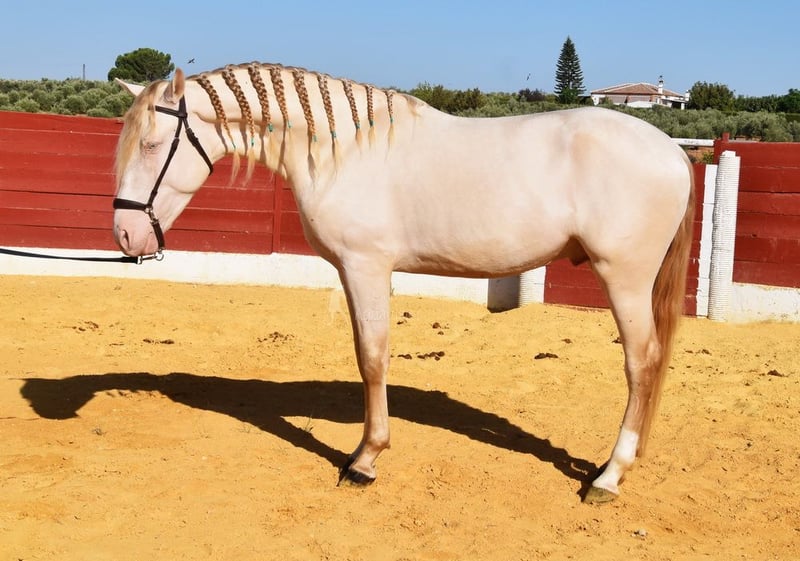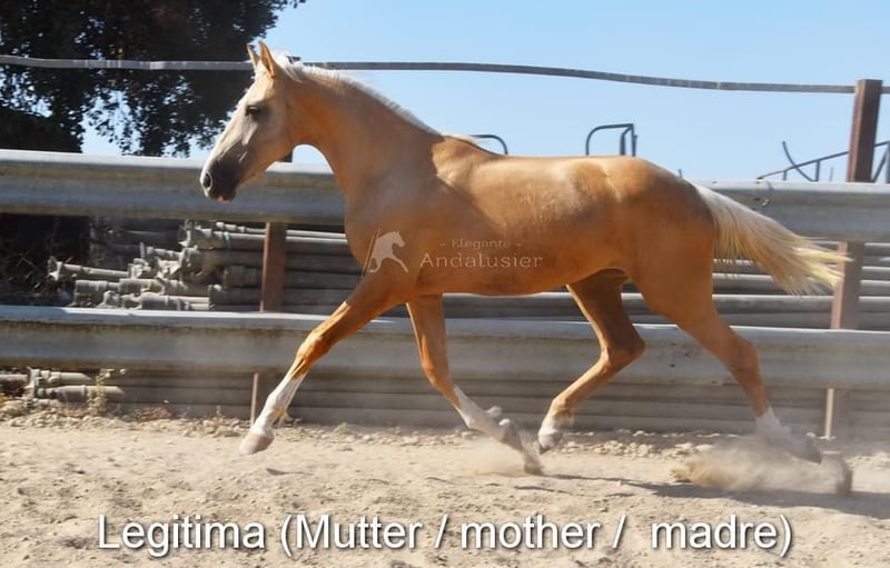 Lieve karakter met aangenaam temperament, nieuwsgierig, aanhalig, speels, ongetraind, staat buiten met ruinen, speciale kleur, goede bewegingen www.elegante-andalusier.com