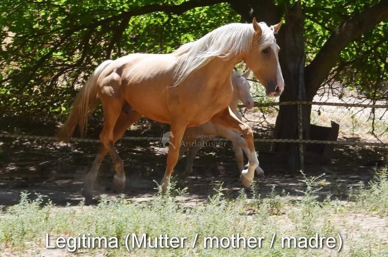 carattere calmo, curioso, coccolone, giocherellone, grezzo, sta all'aperto con i castroni, colore speciale, buoni movimenti www.elegante-andalusier.com