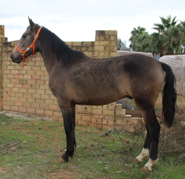 Goku is a handsome Andalusian young stallion in a special buckskin color. He has a gentle temperament, a clear mind, and, once he trusts you, he is a real cuddly companion. Goku comes from the Marismeña breed, meaning he was born and raised in the wild until he was backed. He is now ready to be ridden, a task we can gladly assist with if desired. A health and soundness check (AKU) can be arranged upon request. International transport can be organized. Videos available upon request.