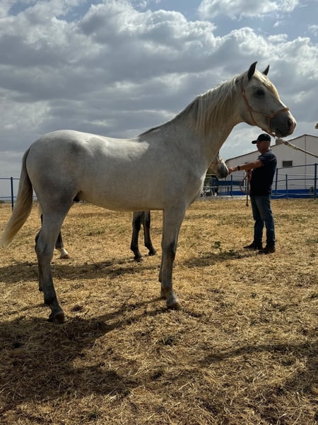 Wunderschönes 2-jähriges Hengstfohlen mit einer Größe von 158 cm/15,2 h. Er ist nicht nur schön, sondern auch ein sehr gesitteter Junge. Steht den ganzen Tag, um gestriegelt zu werden und hat kein Hengstverhalten. Hat 3 schöne, korrekte und gerade Gänge. Er wird ein super Dressurpferd, wenn gebrochen und produziert. Offen für Untersuchungen oder Röntgenbilder. Alles zur Verfügung, um zu sehen, wenn Sie auf dem Hof reisen können. Sitz in Badajoz, Spanien. Weltweiter Versand möglich, bitte kontaktieren Sie uns für ein Angebot.