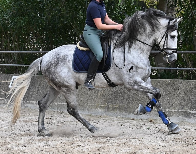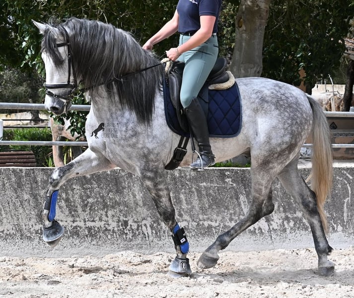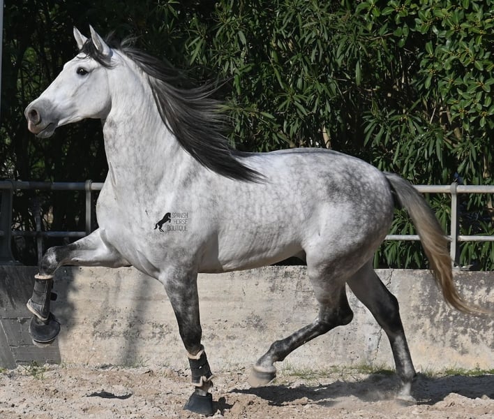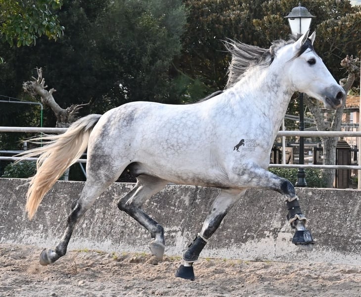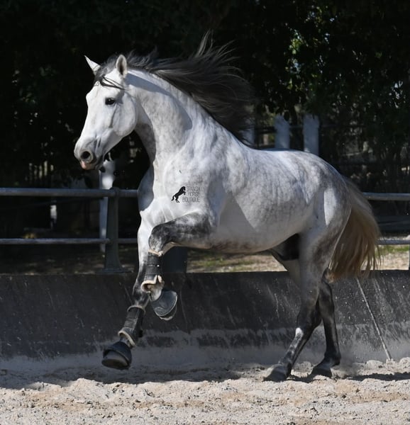 Dieser 2021 geborene PRE Hengst (Andalusier mit Rassenachweis der ANCCE) ist ein Bilderbuch-Spanier! Schön barock, wallende Mähne, spanischer Esprit, waches aber sanftes Auge und ein graziler Kopf. Dazu bewegt er sich noch unfassbar gut, er fliegt wirklich nur so über den Platz, wie ich es selten bei einem Spanier gesehen habe. Das kommt nicht von ungefähr, denn er ist ein Sohn des weltbekannten Dressurmeisters ROMERO DE TRUJILLO! Der Papa räumt alle Schleifchen und Preise ab, die es in der Dressurwelt des PRE zu ergattern gibt und dieser sein Sohn, hat auch großes Potenzial, um dressurambitionierte Reiter glücklich zu machen. Dazu kommt noch JUDIO VII als Großvater, der bis heute einer der wichtigsten Hengste der Rasse war und vermutlich für immer unvergessen bleibt. Daher kommt dieses klassische-spanische Exterieur und das Leuchten in den Augen, denn die Judios sind weltklasse Pferde, auch in der Morfologie und sehr sehr beliebt in der Welt des PRE. Der junge Mann misst schon stattliche 167cm (wächst noch!) und da es dem Züchter wichtig ist, dass seine Pferde langsam heranwachsen und nicht überfordert werden, war er lange in der Hengstherde auf vielen Hektar Land und ist aktuell basis angeritten. Er ist sehr arbeitssam, man braucht nur etwas Feingefühl sein Feuer zu zügeln,und noch tut er sich etwas schwer, immer zu 100% aufmerksam zu sein, was aber absolut normal ist, für ein Jungpferd mit Energie. Ohne Zweifel ist dieser Hengst eine hervorragende Option für ambitionierte Reiter die das spanische Pferd und die Dressur lieben, sowie für Züchter! Er ist bereits gekört, hat aber noch nicht gedeckt. Sollte Hengsthaltung nicht möglich sein, besteht die Möglichkeit der Kastration vor Ort. Preis der Qualität entsprechend! Aktuell steht er auf Mallorca! Videos und Abstammung gerne auf Anfrage. Ein Top Pferd zu einem sehr fairen Preis. Gerne organisiere ich vor Ort eine AKU, Beritt, Transport oder auch ihre Reise, sollten Sie persönlich zum Anschauen kommen. Details dazu gerne auf meiner Seite oder im Gespräch. Saludos aus Spanien