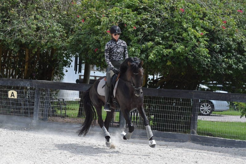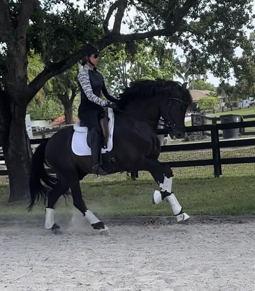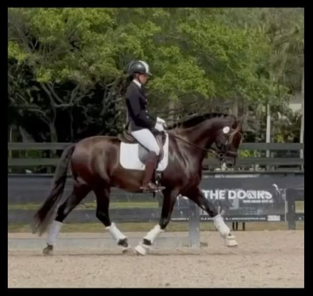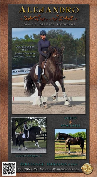 ALEJANDRO, Gorgeous 2019 black bay dressage stallion: Stunning black PRE gentle stallion with fantastic dressage bloodlines. Grandson of the Spanish Olympic stallion Oleaje. Easily manageable, this unbred stallion has an excellent character. He is a willing student, eager to please. Stands at 15.3H. Not at all studdy, travels well. Currently schooling third level with the natural aptitude to go farther. In full training, developing nicely and getting exposure to shows. Can be gelded upon purchase if desired. Located in Wellington, FL