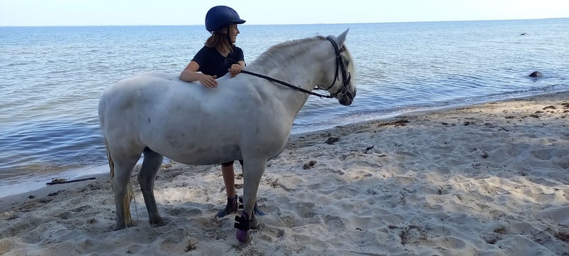 For sale: a beautiful mare. Altana is 12 years old and stands 135 cm tall. She is herd-friendly and unshaken by all outdoor noises. She is used for children but also suitable for light adult riders. She is not a weight carrier. This charming mare is ideal for leisure riders and children seeking a reliable and friendly pony. She enjoys hacking out, including going into water, and is fearless in traffic. She is familiar with dogs and is used in animal-assisted therapy as well as in vaulting for young children. Currently, she is fully schooled.