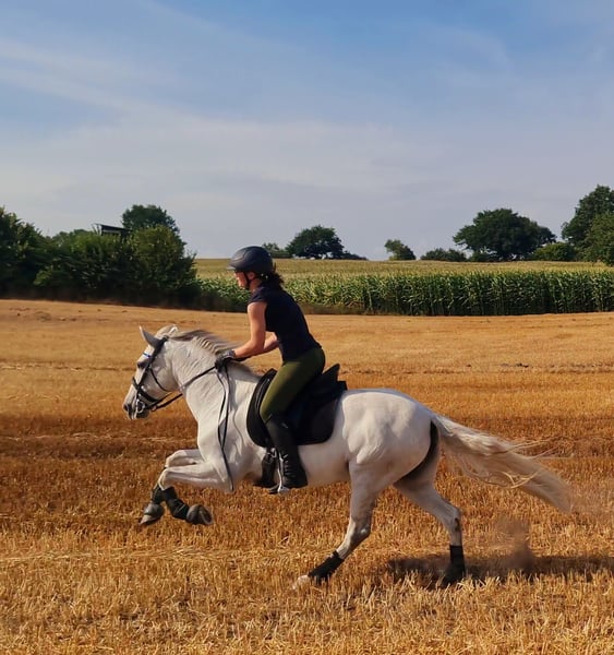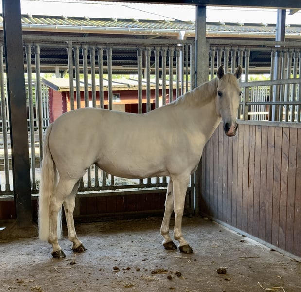 For sale is my 12-year-old (born October 10, 2013) grey mare (approx. 1.53 m). I purchased her in summer 2020 in Germany from a dealer, where she was kept for about six weeks. Prior to that, she lived in Spain. When I bought her, she was just beginning to get used to riders. She is an incredibly sweet mare in handling, but also very sensitive. Loud, stressed people are definitely not suitable for her. An ideal owner would be an individual person she can rely on completely. When it comes to riding and keeping, she is unfortunately not the easiest. Over the past years, it has been quite challenging to integrate her with other horses. It has improved significantly, but it remains a sensitive topic. I believe she now needs plenty of space and would do best in a small, stable herd of 2-3 horses without frequent changes. However, even then, it might not work permanently. Under saddle, she has a lot of go. She is always motivated and also quite sensitive here. Riding her requires a confident rider who is secure in their seat and willing to adapt and do things differently than they might have learned. Now, the reason I want to sell her: she is a horse that especially needs routine when ridden. Unfortunately, I don’t have the time to provide that consistently. Most of her riding has been in the arena or out on the trails. She is capable of all basic gaits, but not much more has been trained. Currently, she is ridden 1-2 times a week. In 2021, she was in full training for six weeks. She has always worn front shoes, and rear shoes as needed in summer. She is vaccinated (tetanus, influenza, West Nile Virus). She is absolutely well-behaved at the farrier. Loading has always been successful, but she still lacks routine here. She is very easy to feed but picky with mineral supplements; otherwise, she is a voracious eater. She needs a fly sheet in summer because she gets stressed quickly when flies bother her. She is not an Eczema horse. During winter, she has always been blanketed. Trial riding possible after a prior acquaintance. Price: €6,900 or best offer. Price is negotiable, and a good stable place takes precedence!