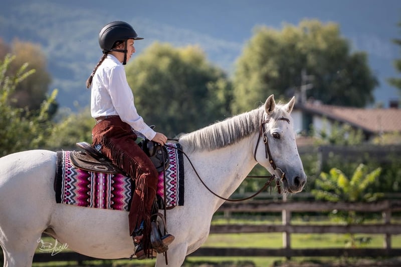 With a heavy heart, we are selling our mare Pequenã (Becky). She is primarily ridden in Western style but has a lot of fun jumping, is well-behaved in the field, very fearless, and is a great companion once you have won her heart. However, she needs a consistent and confident rider with a gentle hand who can provide her with security. At 15 years old, she still has a lot of energy and participates in everything. In the herd, she prefers to be high-ranking and is currently kept in an open stable. She is talented in Mountain Trail.