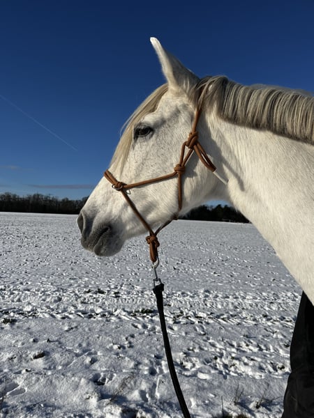 Buenas Noches ist eine 19-jährige Spanier-Mix-Stute. Ihre Turnierkarriere wurde 2021 nach einem Sehnenschaden beendet. 2023 brachte sie ein Fohlen zur Welt und wurde anschließend wieder schonend antrainiert und lief dabei lahmfrei. Nach einer weiteren Zuchtpause bekam Noches 2025 ein Embryotransfer-Fohlen. Sie ist eine sehr gute Mama und beide Geburten sowie Besamungen waren komplikationsfrei. Wir wünschen uns für Noches ein liebevolles Zuhause für immer. Sie möchte gerne noch beschäftigt werden und zeigt viel Freude an Bodenarbeit sowie an ausgedehnten Waldspaziergängen. Sie lässt sich gerne betüddeln und ist für alles Neue offen. Noches ist keine zickige Stute. Im Umgang ist sie sehr angenehm, menschenbezogen und gegenüber anderen Pferden ruhig sowie klar in ihrer Kommunikation. Bei weiteren Fragen kann gerne telefonisch Kontakt aufgenommen werden. 0171 2047082