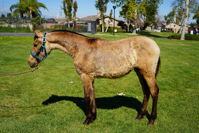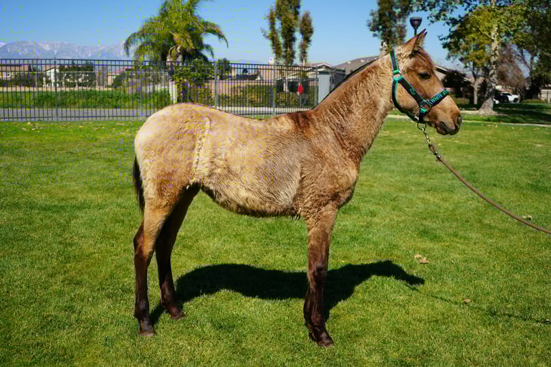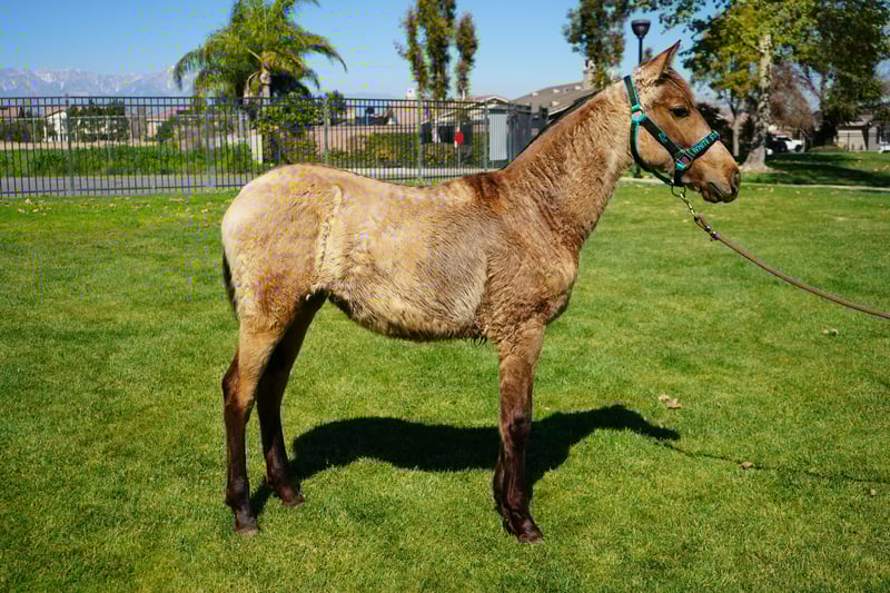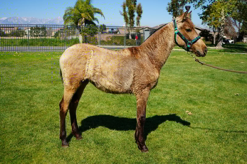 Registered with the Spanish Horse Association (ANCCE) Great option to add color and spark to your breeding program Family Background - Sire (Mujeriego De Mena) Distinctive buckskin Andalusian that has a great ability under saddle for working equitation. Mujeriego was one of the first imported Perlino stallions from Spain who contributed to the birth of many diluted color offspring. - Dam (Mangonada De Olmos) Direct daughter of Atrevido Mango, the only horse to win the triple crown in SICAB which is the largest Spanish horse competition in Spain. Atrevido comes from Borgues bloodline which are horses known for their great temperament, nobleness, and athleticism which made them excellent sport Andalusians.