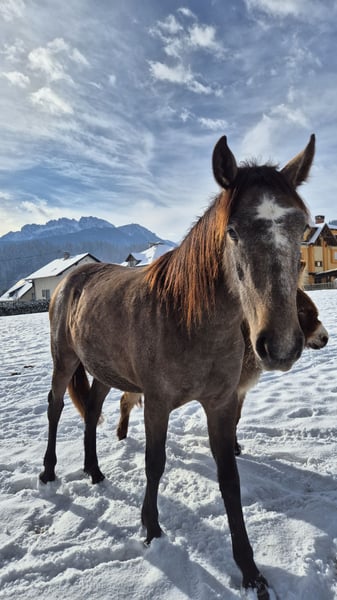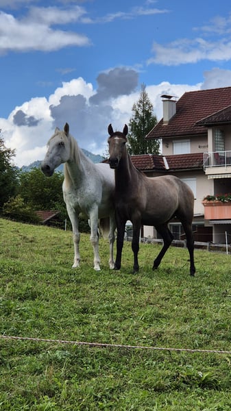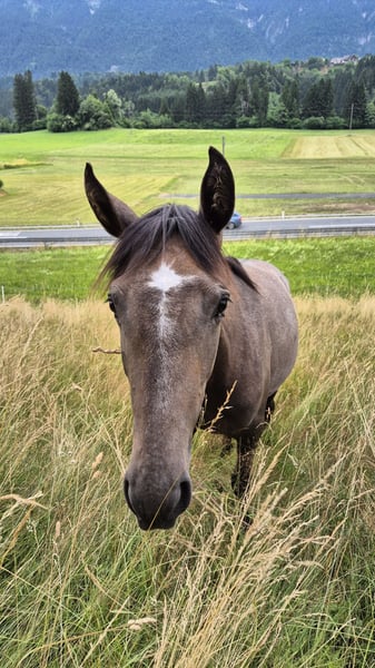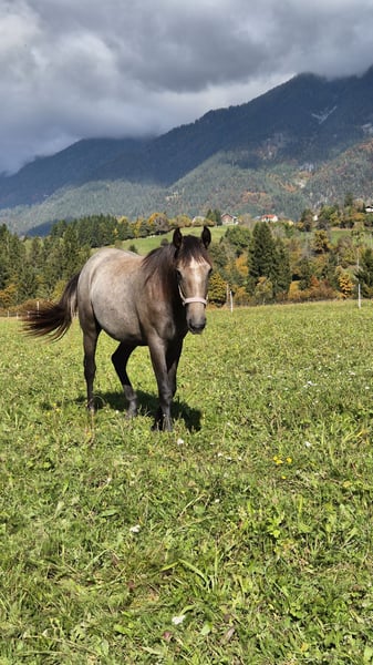 Unsre Sophie ist eine Andalusier- Stute im Jänner 2024 geboren & ca. 155cm groß Farbe: Braune (span. Pass: Bayo) Sie ist kerngesund - hatte damals einen Nabelbruch, dieser wurde opriert & macht keinerlei Probleme! Sie hat einen traumhaften Charakter, ist immer bei der Sache, lernt irrsinnig schnell & gerne & ist für absolut alles zu haben! Sie ist natürlich halfterführig, Hufe geben geht auf Kommando, longieren macht sie schon total toll mit. Sophie liebt Spaziergänge, wo sie auch mal herumtollen darf, ist dabei aber immer händelbar! Sie steckt ihre junge Energie auch sehr gerne in kleine Denkaufgaben, wie spanischer Schritt, Spin, Lächeln oder Hinterhand- / Voderhandweichen. Sie ist für absolut jeden Spaß zu haben, leicht zu überzeugen & hatte auch schon einige Male den Longiergurt drauf. Sie ist sicher ein tolles Pferd für Menschen, die gerne Bodenarbeit Lektionen machen & dann weiters ein verlässliches Reitpferd haben wollen. Sie ist kein Notverkauf & wird auch nur in Hände abgegeben, wo es zu 100% passt. Nach einen persönlichen Kennenlernen von Pferd & Mensch können wir gerne weiteres Bespreche. Gerne eine WhatsApp/ Nachricht an 0650/5131579