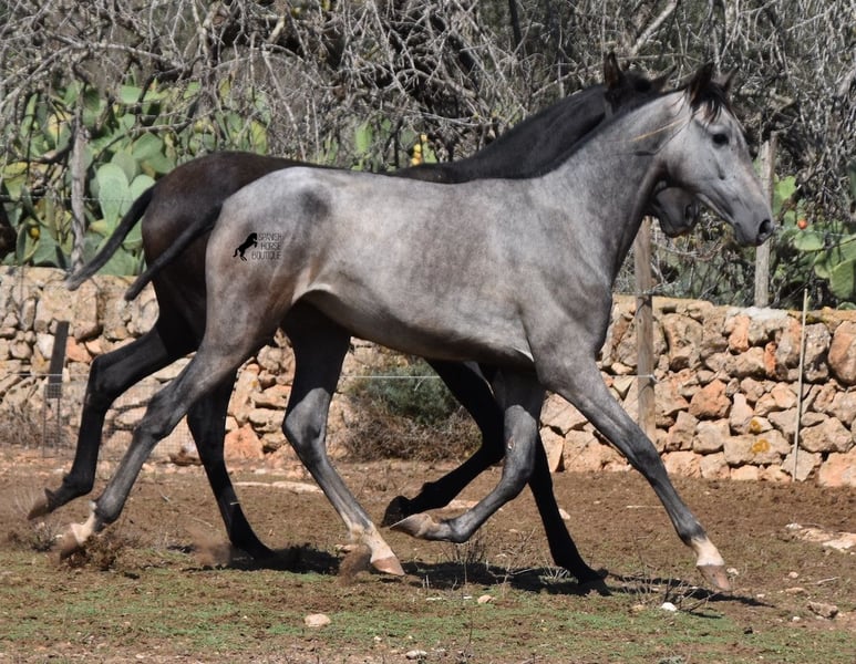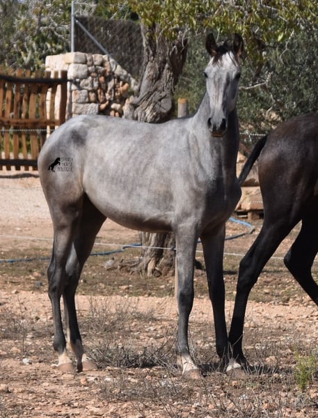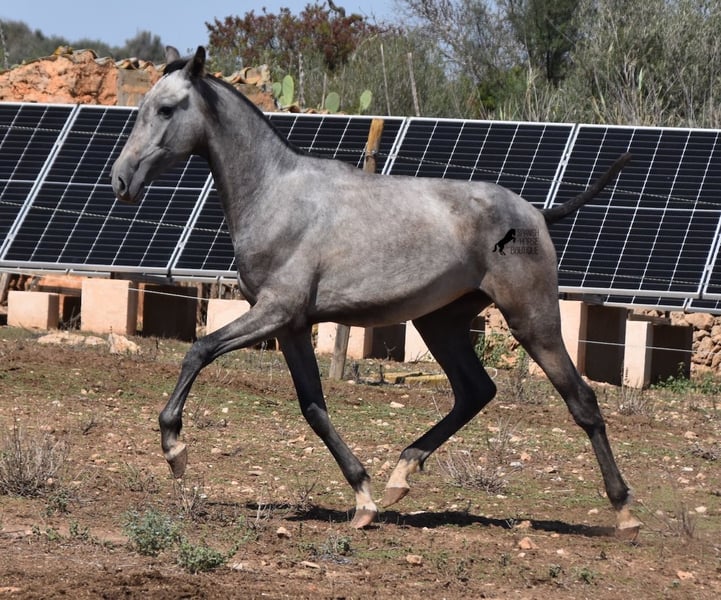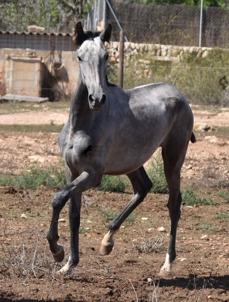 This PRE mare (Andalusian with ANCCE breed certificate), born in 05/2023, is already a magical, elegant young horse. Her pedigree is truly sensational, because on her sire's side she can be traced back to the exceptional stallion FER TEMPRANILLO, who has strongly influenced the PRE of today. On her dam's side we find the unique JUDIO VII, as well as Mejorante and Recomendado stallions! She already has great movement with lots of impulsion, despite the stony ground. But thanks to the ground and her robust attitude, she has very clear legs and good hoof quality. She lives outside 24 hours a day with a friend and is therefore well hardened in all weather conditions (it gets cold and frosty even in winter!). Her expected final height is around 160cm and she will later be open to many disciplines thanks to her good movement and agility. There is the possibility to leave her longer in Mallorca for breeding, but she would be ready to leave and come to you :) Videos and pedigree on request. Her location is Mallorca. I would be happy to organize a foal AKU on site, transport or even her trip, should you come to see her in person. Details on my site or in conversation. Saludos from Spain