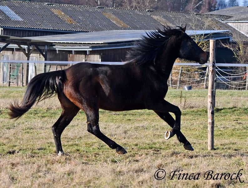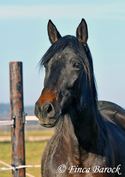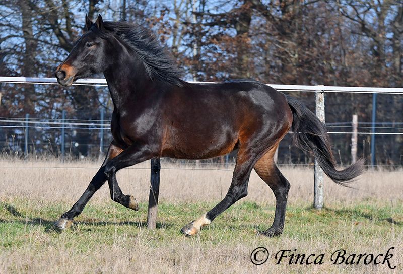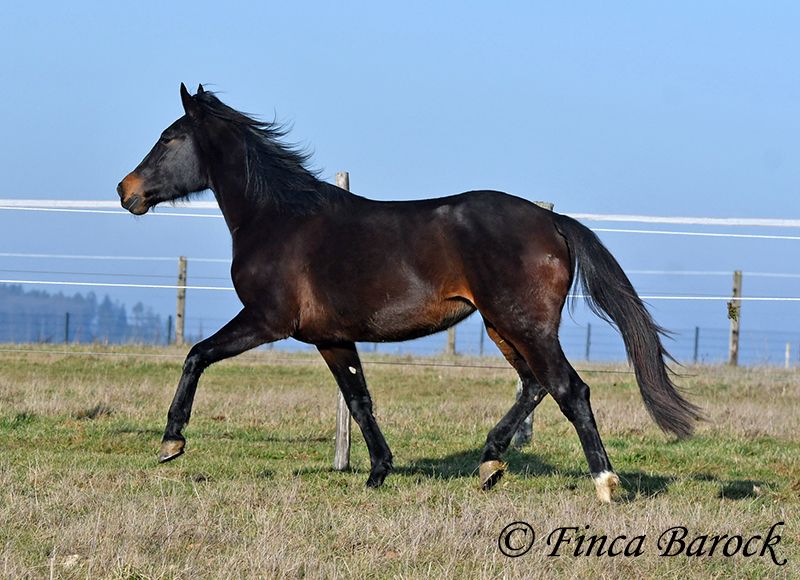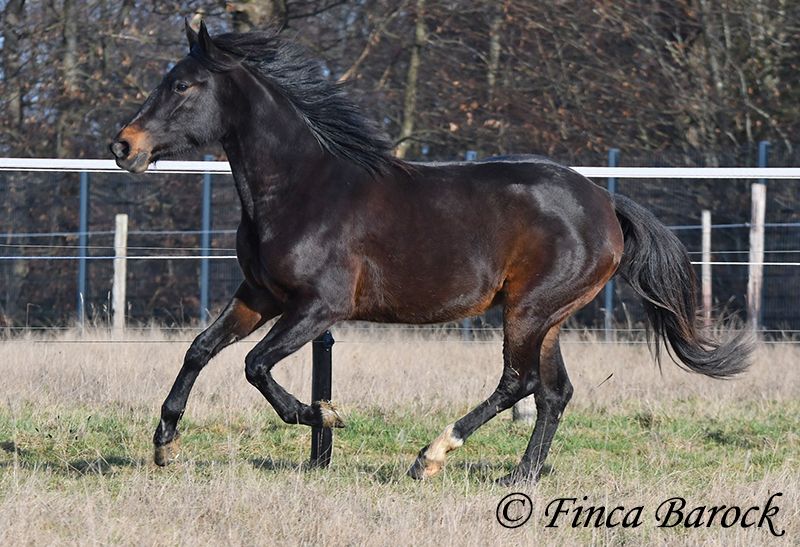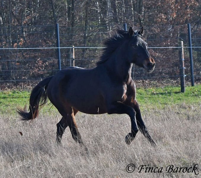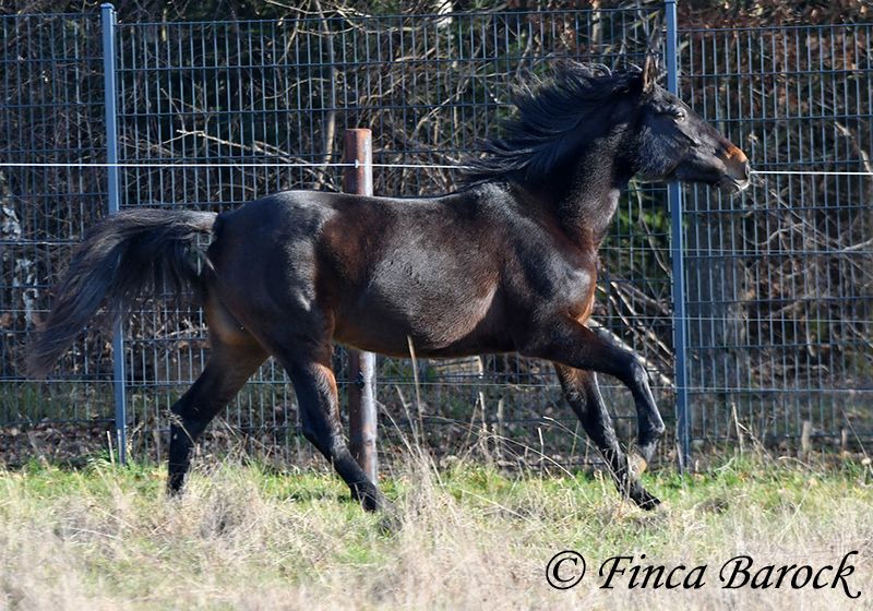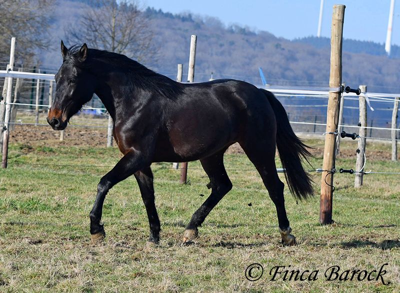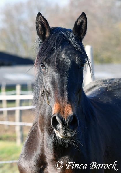 Rasse: Andalusier Name: Africana Geschlecht: Stute Stockmaß: 156 cm Alter: 17.04.2022 Farbe: Schwarzbraun Preis: 9500 € Vater: o. P. Mutter: o. P. Africana, unsere sanfte, sehr verschmuste Maus mit 1a Charakter. Es gibt Sie einfach, diese Jungpferde welche eine unglaublich hohe Grundcoolness mit sich bringen. Africana gehört auf jeden Fall dazu. Sie wird erst im April 4 Jahre, benimmt sich im Umgang aber deutlich ruhiger und gelassener als viele ältere Pferde. Dazu liebt Sie Kinder. Und diese Sie. Es ist total auffällig das alle Kinder bei Ihr stehen bleiben und mit ihr schmuse wollen oder Africana Putzen oder Führen möchten. Reiterlich ist Africana in den GGA geritten, sowohl Viereck als auch im Gelände. Natürlich ist sie mit ihrem Alter noch am Anfang Ihrer Ausbildung. Trotzdem vermittelt Sie bereits ein tolles Reitgefühl und möchte es Ihrem Reiter immer recht machen. Sie wurde auch schon von Kindern und Jugendlichen geritten und verzeiht auch durchaus kleine Reiterfehler. Wir können uns gut vorstellen dass sie bei weiter guter Ausbildung auch von einem schwächeren Reiter mitgeritten werden kann. Im Gelände ist Sie aufmerksam und mutig. So geht Sie auch vorweg, wenn andere Pferde es zu gruselig finden (und schleppt die älteren mal eben so ab) Sie steht bei uns zusammen mit ihrer Freundin Señorita draußen und zeigt sich verträglich. Eine absolut tolle Lady, für jeden der ein Pferd mit einem grundsolidem Charakter sucht. Bei Africana sind schon gute Grundlagen gelegt, sie aber noch total offen für neues und kann dementsprechend weiter gefördert werden. Kontakt: Finca Barock, Tel. 0173-696 31 81, 56291 Wiebelsheim