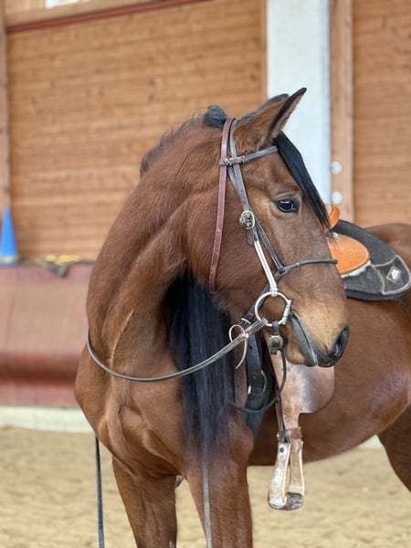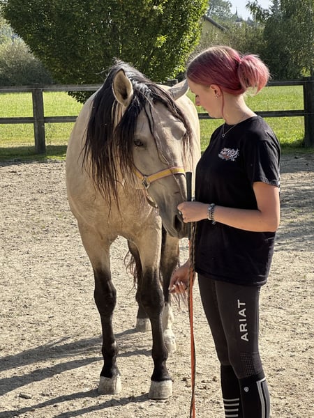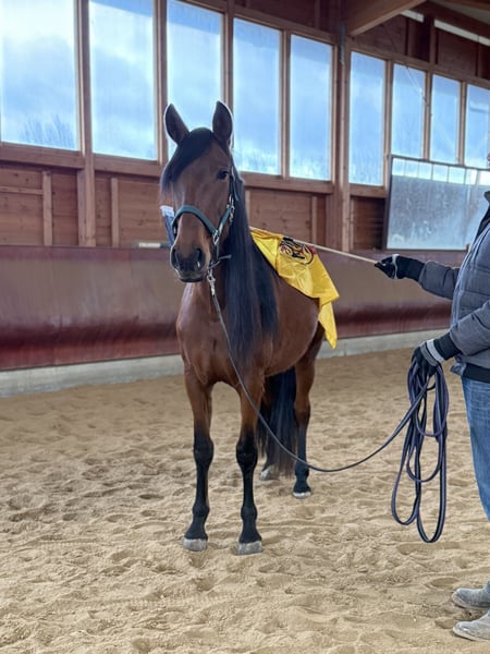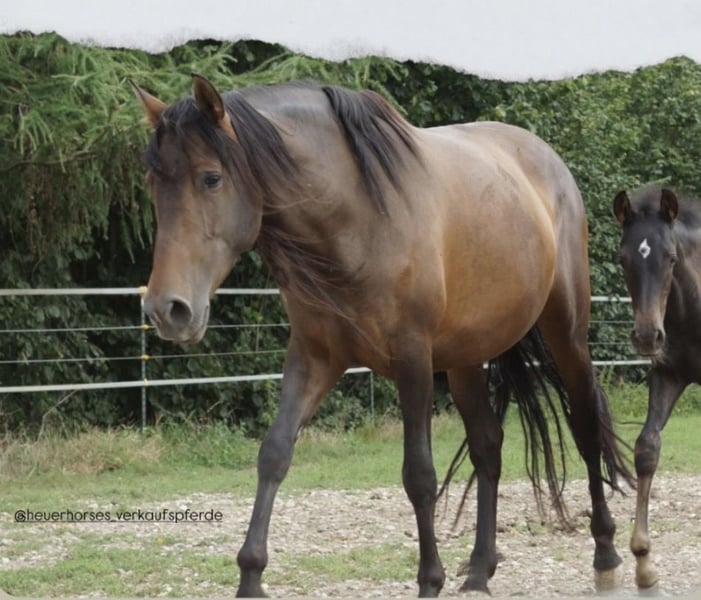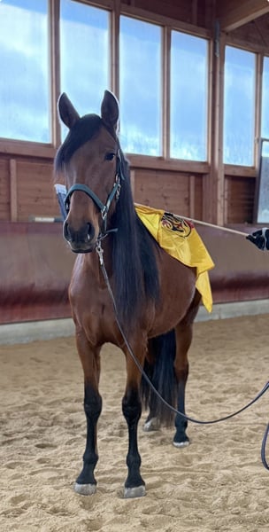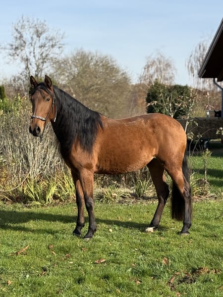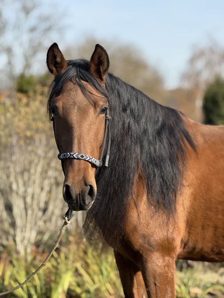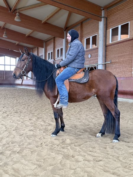 BRAVES FREIZEITPFERD FÜR FAMILIE UND WIEDEREINSTEIGER Pura Raza Española (PRE), glänzend braune bildhübsche Stute mit Mega langer Mähne, 4 Jahre, zur Zeit ca. 1,57 m groß Die sanfte Herzensdame für Familie, Freizeit und mehr. Manchmal trifft man ein Pferd, das vom ersten Moment an Selbstsicherheit ausstrahlt. Diese liebenswerte PRE Stute aus unserer Zucht ist genau so ein Schatz. Sehr menschenbezogen, cool und gelassen, mit einem freundlichen, unkomplizierten Charakter, ein echtes Wohlfühlpferd, das seinem Menschen alles recht machen möchte. Warum man sie ins Herz schließt? Unter dem Sattel zeigt sie sich super brav und schon angenehm zu reiten. Vom Profi wird sie zur Zeit pferde- und altersgerecht angeritten. IhrLeuchten braunes Kleid und ihr harmonisches Exterieur machen sie außerdem zu einem echten Hingucker. Wer ein zukünftiges, zuverlässiges Familienpferd sucht, das Ruhe, Freundlichkeit und Komfort vereint, wird sie lieben. Steckbrief & FaktenRasse: Pura Raza Española (PRE) aus unserer Zucht Geschlecht/Alter: Stute, 4 Jahre Stockmaß: ca. 1,57 m Ausbildung: vom Profi angeritten, sehr gut zu sitzen, gelassen im Alltag Wesen: superlieb und für ihr Alter schon recht cool und gelassen, unkompliziert, menschenzugewandt Gesundheit: ekzemfrei, gesund, regelmäßig entwurmt. Equidenpass Alltag: schmiedefromm Perspektive: entwickelt sich zu einem verlässlichen Familien und Freizeitpferd Service: weitere Ausbildung bei uns möglich; sie bleibt bis zum Verkauf im professionellen Beritt Hinweis: Ihr Preis steigt mit fortschreitender Ausbildung Zubehör: Auf Wunsch kann ein neuer passender Westernsattel mit erworben werden Fair & transparent Sie ist jung und befindet sich in solider Grundausbildung. Mit unserer ruhigen, pferdegerechten Förderung entfaltet sie ihr volles Potenzial. Wir wünschen uns ein Zuhause, das diese sanfte Art schätzt und ihr Zeit für ihre weitere Entwicklung am Boden und unter dem Sattel gibt. Abgabe in liebevolle Hände. Besichtigung & Probereiten gern nach Absprache. Schreiben Sie uns oder rufen Sie uns an TEL 01709343872 wir freuen uns, Ihnen diese wunderbare Stute vorzustellen! Für einen Besuchstermin mit probereiten berechnen wir 40€ welche beim Kauf erstattet werden.