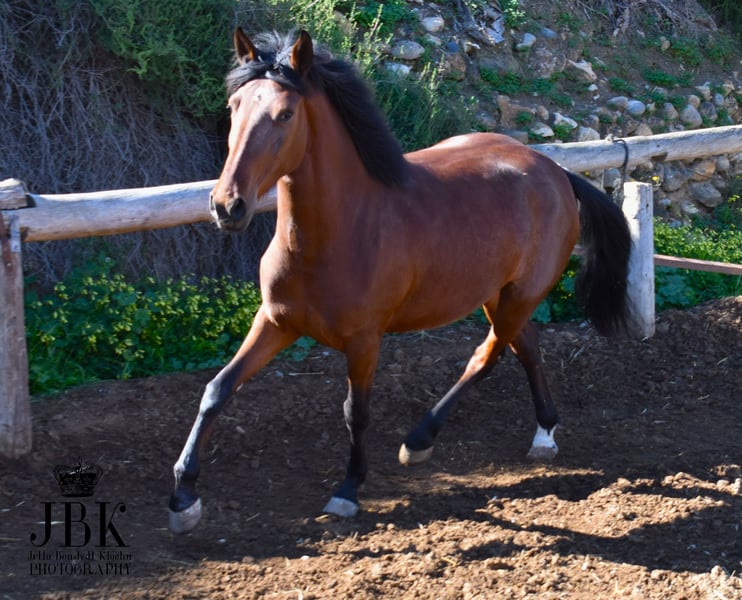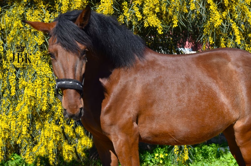 This beautiful cruzado mare is looking for a new home. Unfortunately, the owner's circumstances have changed, and she cannot keep her. Pastora is in my stable, and she is the mother of my foal. For more information, feel free to contact me via WhatsApp or in a personal conversation. Solidly backed, 1.61 m tall. Phone: 0034630322494. Pastora is an Andalusian Lusitano cross with a current height of 1.61 m. She was born on April 4, 2021. There are only a few horses that can work so confidently and reliably at the age of 4. She has a super friendly temperament, never seeks conflict, and gets along very well with other horses. Pastora is trained in the basic gaits and is already familiar with short turns.