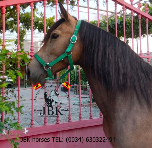Super liebe junge Andalusier Falbstute Rosa sucht ein Zuhause. Wer Spass daran hätte diese wunderhübsche Stute weiter zu fördern, wird mit ihr nicht verkehrt liegen. Sie kennt das Longieren, den Sattel und Trense und den Reiter auf ihr. Dabei zeigt sie sich unerschrocken. Es wird nicht schwierig werden sie weiter in ihrer Aufgabe als Reitpferd zu festigen. Rosa wuchs im Herdenverband auf und ist somit auch gut sozialisiert. Sie sucht keinen Streit, und geht Quereleien innerhalb einer Herde eher aus dem Weg. 1, 49 m zur Zeit. 4 Jahre.