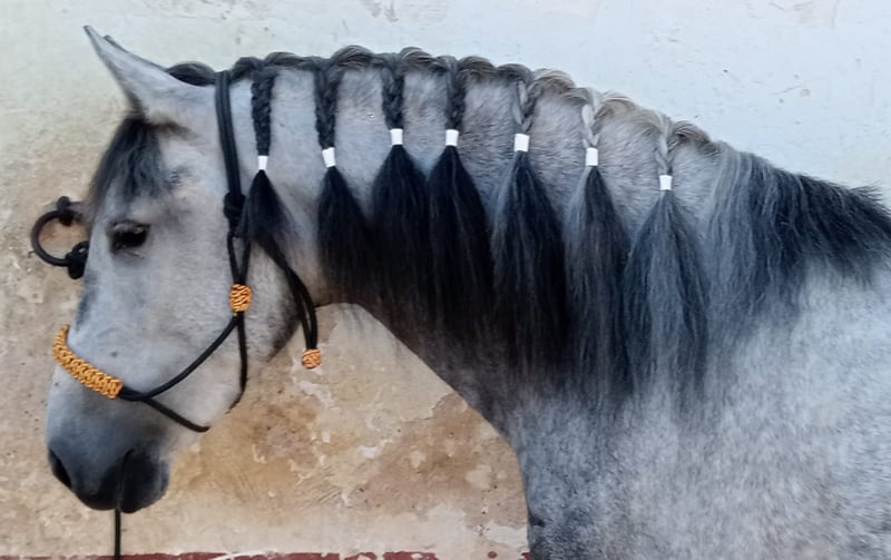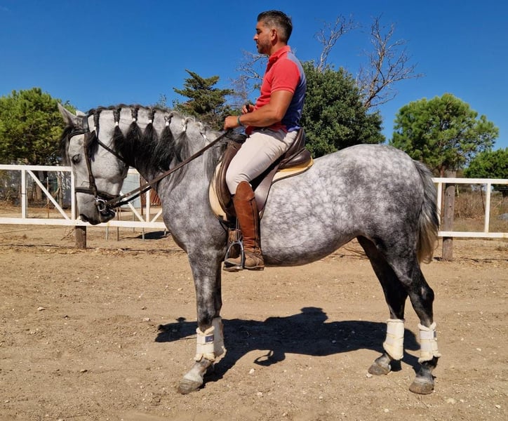 Piękna, typowa, barokowa klacz hiszpańska o dużym, eleganckim karku, solidnej budowie i wyrazistym wyrazie twarzy. Może nie jest jeszcze gwiazdą w konkursach, ale zachwyca łagodnym, bardzo przyjaznym usposobieniem, równowagą, chęcią do nauki i dobrym charakterem nerwowym. Solidnie wytrenowana około 6 miesięcy temu w stylu klasycznym na ogłowiu, dobrze radzi sobie w terenie i chętnie podąża samodzielnie. Nawet podczas pracy z bydłem wykazuje odwagę i nawet sprawia jej przyjemność „popychanie byka”. Uważamy, że ta urokliwa klacz będzie idealna dla ambitnych jeźdźców rekreacyjnych lub fanów Working Equitation, a także jako koń dla rodziny, ponieważ jest bardzo cierpliwa wobec dzieci. Dobrze sprawdzi się także jako koń dla młodzieży z doświadczeniem jeździeckim. Klacz ta pochodzi z linii PRE, co widać, choć nie posiada oficjalnych dokumentów z ANCCE, ponieważ nigdy nie złożyła wniosku o papiery; w związku z tym otrzymuje paszport, co wpływa na cenę. Na pierwszy rzut oka wydaje się zdrowa, choć na życzenie możemy przeprowadzić badanie kliniczne (AKU) przed zakupem. Transport na terenie Europy jest bezproblemowy i możliwy do zrealizowania w krótkim czasie. Cena, na przykład, do Niemiec wynosi około 1000-1300 € w zależności od miejsca docelowego. Więcej informacji i filmy tej klaczy chętnie udostępniamy przez WhatsApp w języku niemieckim, angielskim lub hiszpańskim.