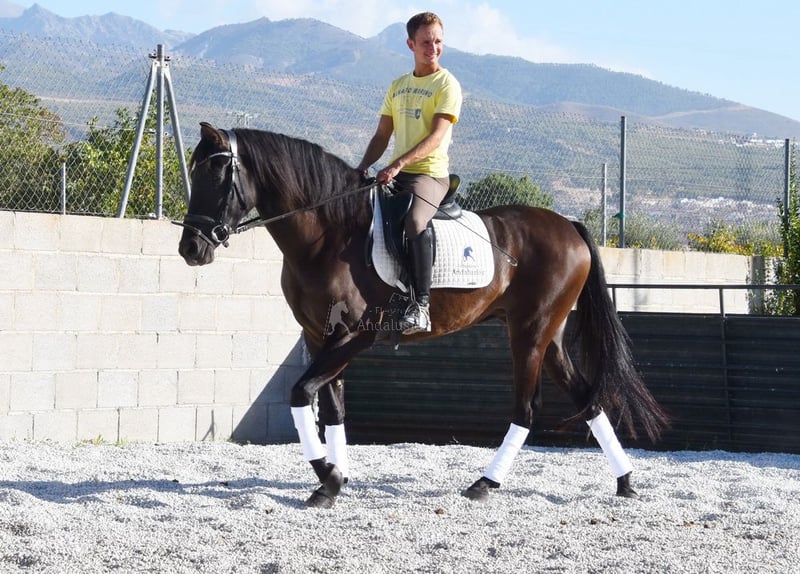 caractère doux avec un tempérament agréable, curieux, câlin, monté aux trois allures et en extérieur, convient aux cavaliers peu expérimentés, a déjà passé des radiographies www.elegante-andalusier.com