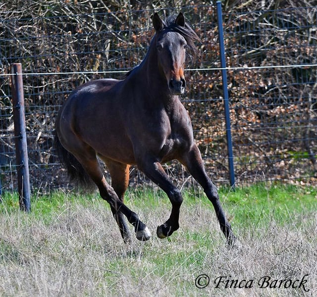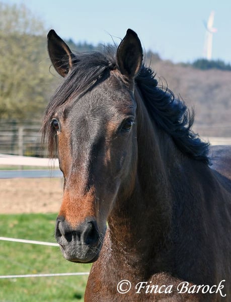 Rasse: Andalusier Name: Veracruz Geschlecht: Stute Stockmaß: 156 cm Alter: 29.04.2020 Farbe: Braun Preis: 7500 € Vater: o. P. Mutter: o. P. Veracruz, ist eine hübsche, kompakte Lady mit sitzbequemen Bewegungen. Veracruz braucht einen Moment zum Ankommen, hat man ihr Herz erobert folgt Sie aber wie ein Hund. Die ersten Tage zeigte Sie sich bei uns sehr zurückhaltend, mittlerweile ist sie schon im Schmusemodus angekommen. Sie ist in den GGA geritten, kennt mehr Gelände als Viereck. Veracruz ist viel in kleinen Gruppen herausgegangen. Man merkt dass Ihr bekannte Pferde viel Sicherheit geben. Je mehr Sie ihren Reiter kennt, desto mutiger wird Sie aber alleine im Gelände. Sie hat unter dem Reiter ein gesundes Go. Sie ist ein Pferd welches eher etwas in die Ruhe geritten werden muss, als das man ständig nachtreiben muss. Bei uns lernt Sie aktuell mehr das Viereck kennen und macht hier beständig Fortschritte. Auch hier - je mehr Sie ihren Reiter kennen lernt, desto entspannter wird Sie und möchte immer gefallen! Veracruz spiegelt sehr Ihren Menschen. Sie hat große Freude in der Boden und Freiarbeit. Mit anderen Pferden zeigt Sie sich verträglich, ist Herdenhaltung gewöhnt. Eine schicke Maus, mit sehr gleichmäßigen Bewegungen für den Reiter der gerne leichtrittige, fleißige Pferde mag. inkl. klinischer Untersuchung und Röntgenbildern Freilaufvideo: https://youtu.be/8zTafo5bdlQ?si=yBITEbSjbf3x-Kky Kontakt: Finca Barock, Tel. 0173-696 31 81, 56291 Wiebelsheim
