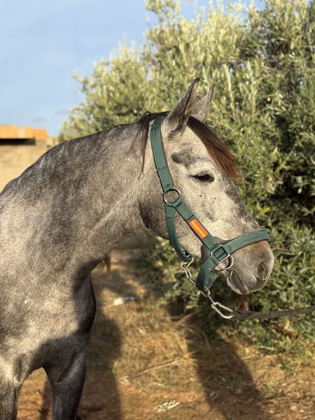 Amalia, yegua nacida en 2019 y de aproximadamente 158 cm. Es un cruce entre una yegua Lusitano y un semental Oldenburg, pero sin pedigree en su pasaporte. Amalia es una yegua hermosa con mucho carisma y una mentalidad dulce. Amalia tiene movimientos muy buenos con mucha elasticidad y cadencia. Es muy divertida de montar y parece tener mucho potencial para alcanzar niveles superiores. Es cómoda de montar y tiene una buena boca con un contacto suave. Amalia está bien educada, realiza todos los ejercicios laterales, cambios de pie y ha comenzado a jugar con piaffe y passage. Es fácil de manejar y también es agradable salir a pasear con ella. Se dispone de radiografías más antiguas. Amalia se encuentra en el sur de España y ayudamos con todos los pasos en el proceso de compra. Lee más sobre nosotros en www.cthorsesales.com Contacto: info@cthorsesales.com
