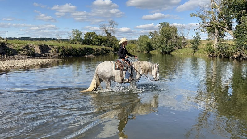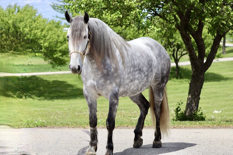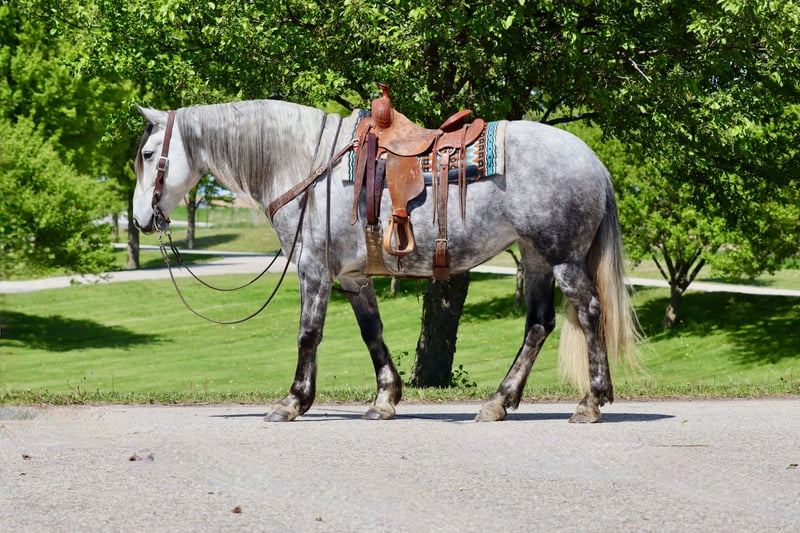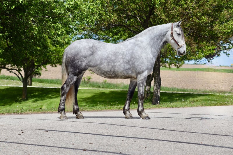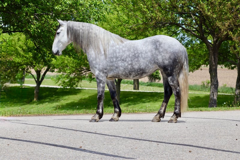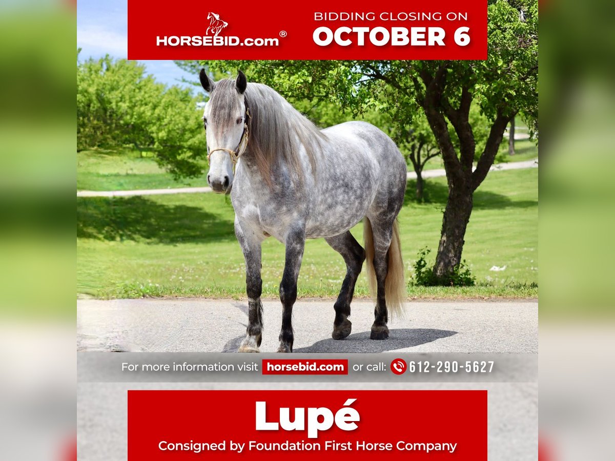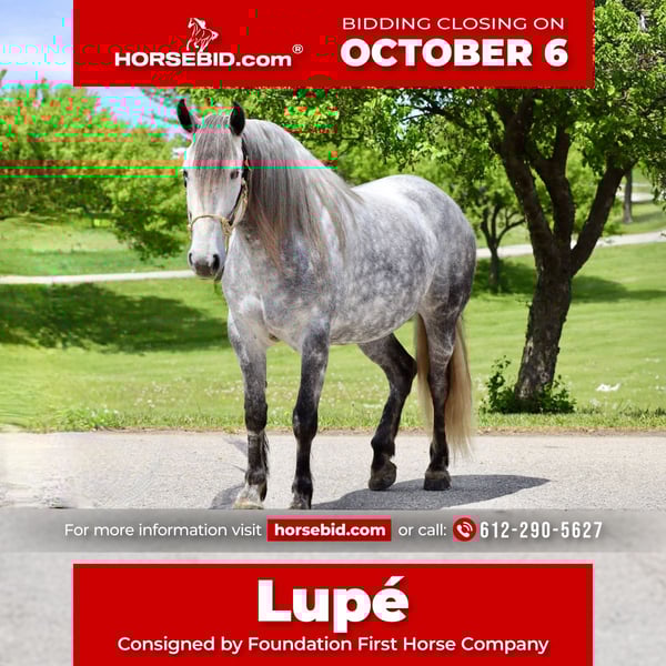 🍂 𝓐𝓾𝓽𝓾𝓶𝓷 𝑨𝑳𝑳 𝑺𝑻𝑨𝑹 𝑳𝑰𝑵𝑬𝑼𝑷 🍂 Happening now thru MONDAY | OCTOBER 6th - Available EXCLUSIVELY on HorseBid's website! For more details and to register visit: www.Horsebid.com CONSIGNOR CONTACT: Foundation First Horse Company 612-290-5627 LOCATION: Chatfield MN BREED: Friesian Andalusian cross REGISTERED: No REGISTERED NAME: Lupé COLOR: Dapple grey HEIGHT: 15.2 AGE: 6 GENDER: Mare Here is a RARE one you do not want to miss out on. “Lupé” has all the things to love, tons of hair, shape, hoof, and gorgeous lofty gaits. Lupé was raised right here, started and trained in our program. She knows all of the Clinton’s Anderson fundamentals on the ground and undersaddle. She works off legs nicely, has a good neck rein and is soft in the bridle. She has been my personal horse here at the ranch, used for checking fence, cattle, and been on countless trail rides. She will let you open gates off her back and has obstacle course training. She is very sure footed and confident making her a blast on trails. We have played with her over jumps and could see her being great at that or dressage as well. Lupé stands tied great, and is good for vet, farrier, baths, and trailering. She has never needed shoes, has great feet and is 100% sound.