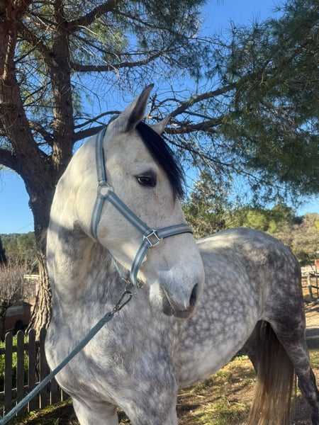 PRE mare born 25/01/2019, 160 cm at the withers, with very good bloodlines and excellent movement. Very good character: noble, calm and easy to handle. Learns quickly and has a good attitude to work. She is ridden, although still green in the arena. Currently she goes very well outside on hacks and in the countryside. Suitable for breeding, having already produced 3 foals. Ideal for breeding or for someone who wants to continue her training. More information, photos or videos available on request.