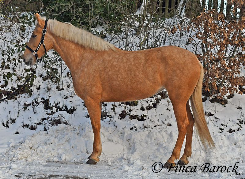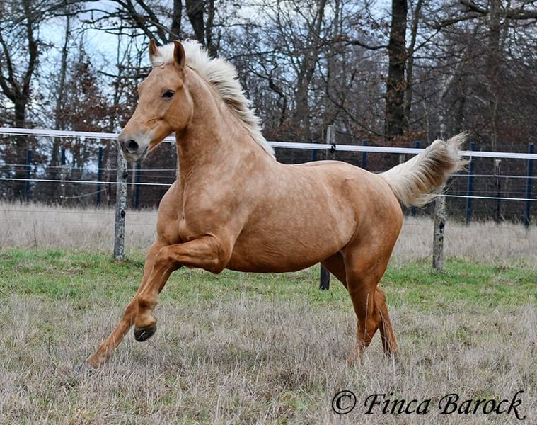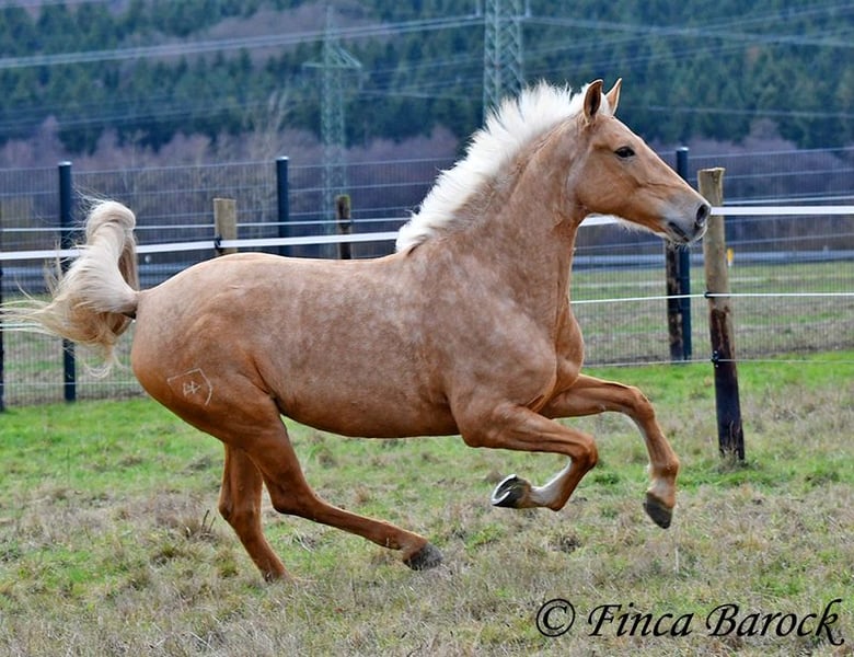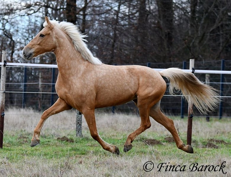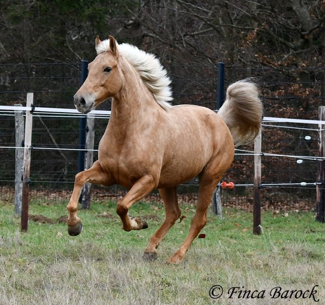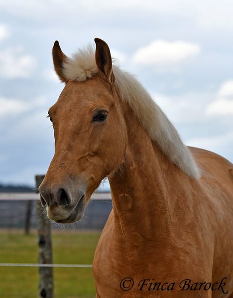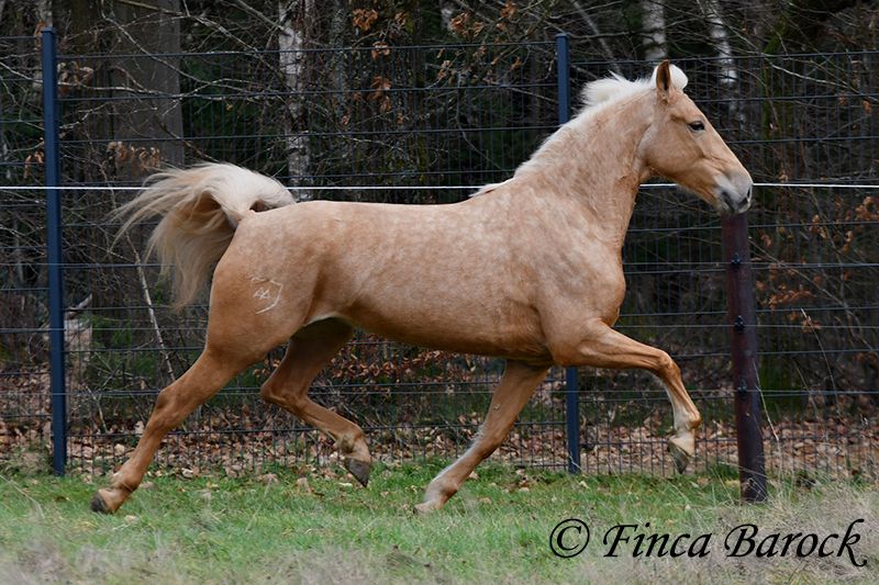 Breed: Andalusian Name: Nadadora Gender: Mare Height: 16.1 hh Date of Birth: February 1, 2019 Color: Palomino Price: €7,999 Sire: Unknown Dam: Unknown Nadadora is a very attractive, compact mare with an excellent size. Her striking jet-black eyes make her a real eye-catcher. She has mostly been ridden in the terrain and feels very at home there. Nadadora is accustomed to exploring both alone and in a group, often encountering dogs, traffic, and water without issue. She is less experienced with work in the dressage arena. In this environment, she can be somewhat unsure and tends to either move forward diligently or stop, depending on the aids she receives. She is never mean and can always be regulated. However, she still finds it challenging to walk a calm trot. The more she gets to know the rider and their aids, the better she becomes. With us, she is gradually learning to work in the dressage arena and is steadily becoming more confident and routine. We are looking for a person who enjoys extensive trail riding and ground work, as Nadadora is very receptive and eager to participate in both. She has smooth, flowing movements and can comfortably carry larger riders. A friendly, large mare with extensive trail riding experience, who, with proper training, will develop a lot of enjoyment in the dressage arena as well. Contact: Finca Barock, Tel. 0173-696 31 81, 56291 Wiebelsheim