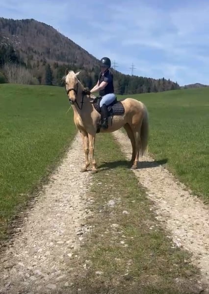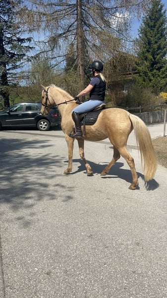 Canela – a sweet soul with a golden coat ✨ This 8-year-old Spanish mare has been in my possession for a year. I rescued her from poor conditions and have lovingly brought her back into work 🐎💫 She is familiar with groundwork, lunging, and has recently been started under saddle again. She does not buck or rear. However, since I do not have enough time alongside my other horses, I am now looking for a horsewoman who can continue working with her under saddle. We have already gone on solo rides, and although she is still a bit unsure, she tries very hard. Canela is not only a real eye-catcher with her golden coat but also an absolute sweetheart in handling ❤️ She loves children and free work 💕🍀 🔹 Height: approximately 157 cm (16.1 hh) 🔹 Gentle, sensitive & honest 🔹 Has an unremarkable clinical health check and X-ray images Anyone looking for a loyal partner with potential will fall in love with Canela! 💛 📍 Location: Koppl (Salzburg)