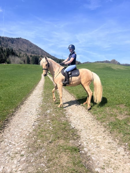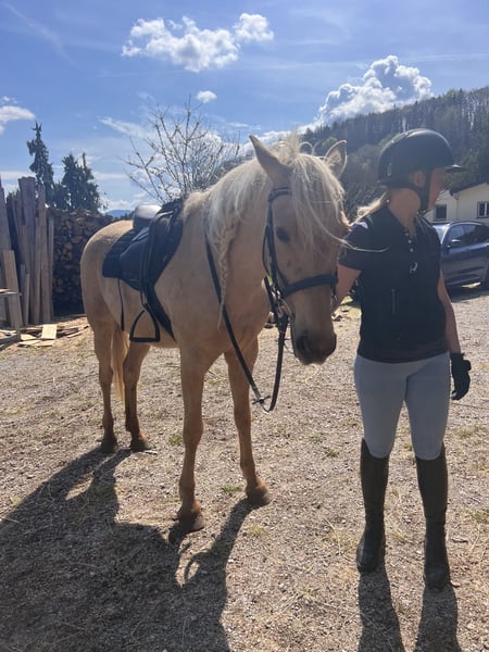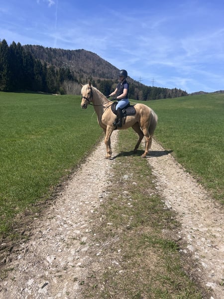 ✨ Canela – goldige Seele und goldiges Fell ✨ Die 8-jährige spanische Schönheit ist seit einem Jahr in meinem Besitz. Ich habe sie aus nicht guter Haltung geholt und liebevoll aufgebaut 🐎💫 Sie kennt Handarbeit, Longe und ist gerade wieder unter dem Sattel gestartet. Sie kennt kein Buckeln oder Steigen. Da ich aber neben meinen Pferden nicht die zeitliche Kapazität habe suche ich jetzt eine Pferdefrau die mit ihr unter dem Sattel weiter arbeitet. Wir waren bereits alleine ausreiten und sie ist noch unsicher aber bemüht sich total. Canela ist nicht nur ein echter Hingucker mit ihrem goldenen Fell, sondern auch im Umgang ein absoluter Schatz ❤️ Sie liebt Kinder und die Freiarbeit 💕🍀 🔹 Stockmaß ca. 157 cm 🔹 Sanft, feinfühlig & ehrlich 🔹 Hat eine unauffällige klinische AKU und Röntgenbilder Wer eine treue Partnerin mit Potenzial sucht, wird Canela lieben! 💛 📍Standort: Koppl (Sbg)