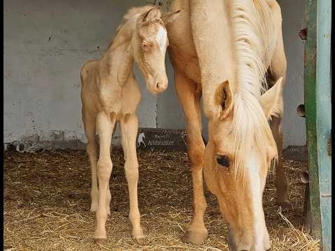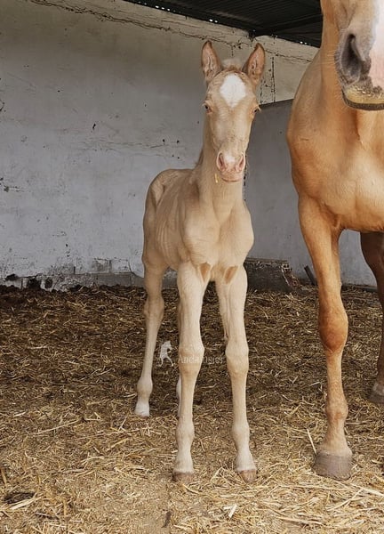 Encantadora potranca recién nacida de Bayo Perla, Andaluz.