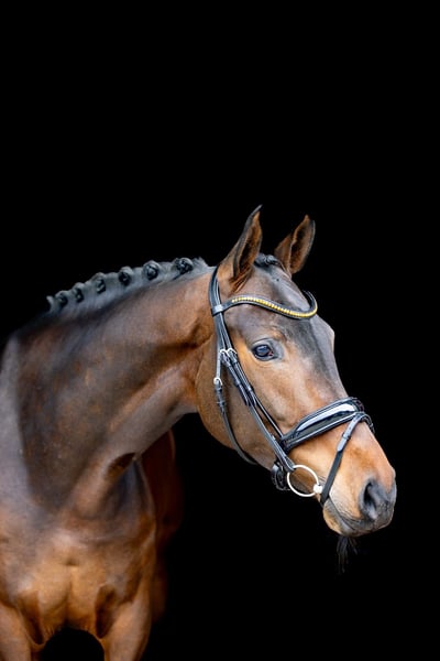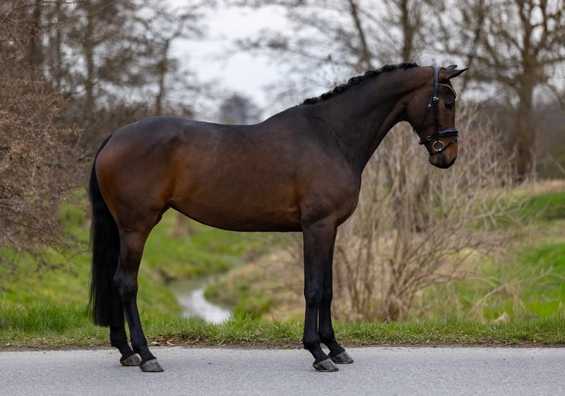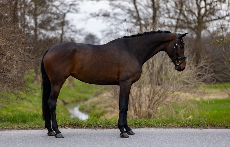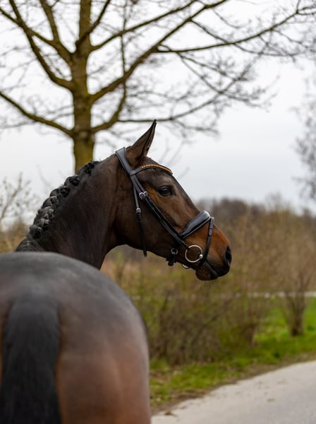 This expressive, dark brown 5-year-old mare captivates at first glance with her harmonious appearance, elegant build, and appealing overall quality. She offers exactly the combination many riders desire: a successful blend of rideability, character, and potential. From a breeding perspective, this mare leaves nothing to be desired: she comes from a top-tier, proven lineage, with both sire and dam producing performance-oriented and high-quality dressage horses. This genetic excellence is clearly reflected in her modern type, her movement quality, and her positive work attitude. Already now, she shows an exceptional balance for her age and is a pleasure to ride. She consistently provides her rider with a confident, straightforward feeling, is seat-friendly, and can be ridden consistently and sensitively. She remains well-behaved, clear-minded, and absolutely reliable – a horse you can depend on every day. Her movements are rhythmical, elastic, and characterized by natural quality – an ideal foundation for further dressage development. At the same time, she impresses with her excellent temperament: friendly, affectionate, and always attentive to humans. Thanks to her comfortable size, she is especially suitable for smaller riders or young riders, yet she also offers enough quality for advanced sporting training. She appeals to both ambitious leisure riders and riders with higher aspirations. In daily handling, she is completely uncomplicated, loving, and balanced – a horse that quickly becomes a reliable partner and brings joy every day. A modern, very attractive horse with great presence, excellent pedigree, and a character that could hardly be better. We warmly invite you to get to know her and to try her out – we look forward to hearing from you! Additional horses for sale are also available with us – perhaps your perfect partner is among them. 📍 Location: Rosenheim 📞 Contact gladly by phone or WhatsApp 📧 Also available via email 📸 Due to current weather conditions, further photos will be added in the coming days.
