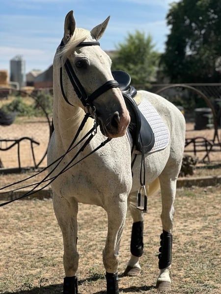 Amaranth Luso-Anglo-Araber, Lusitano 50% Englisch 25% Araber 25%. Widerristhöhe gemessen mit Hypometer 1,60m. Geboren im April 2009 Picazzo Vollblüter Wallach Ideal für Feld und Bahn Er hat an zahlreichen Veranstaltungen aller Art teilgenommen. Sehr gut ausgebildet. Gute Bewegungen und sehr bequem. Schenkelweichen, Rückwärtsrichten, Traversale, Renvers, Hilfengebung, Trabgalopp, eingeleitet in den Fußwechseln... Bei Fragen rufen Sie 696613777 an.