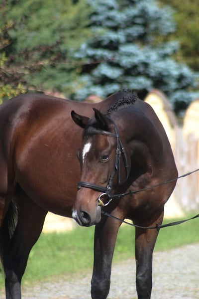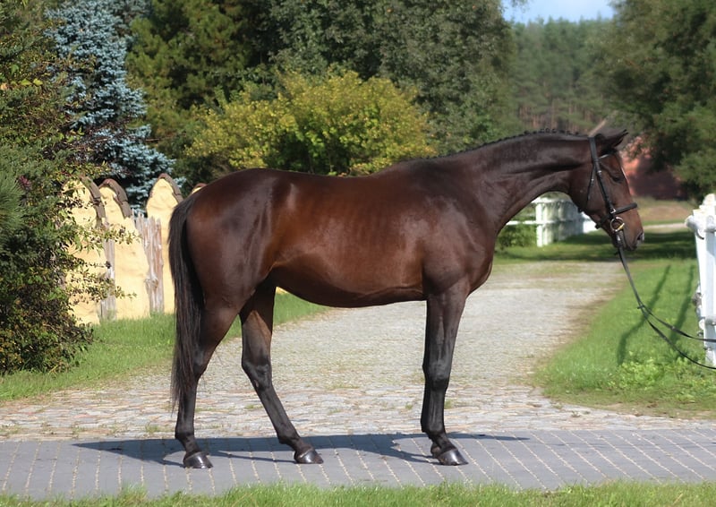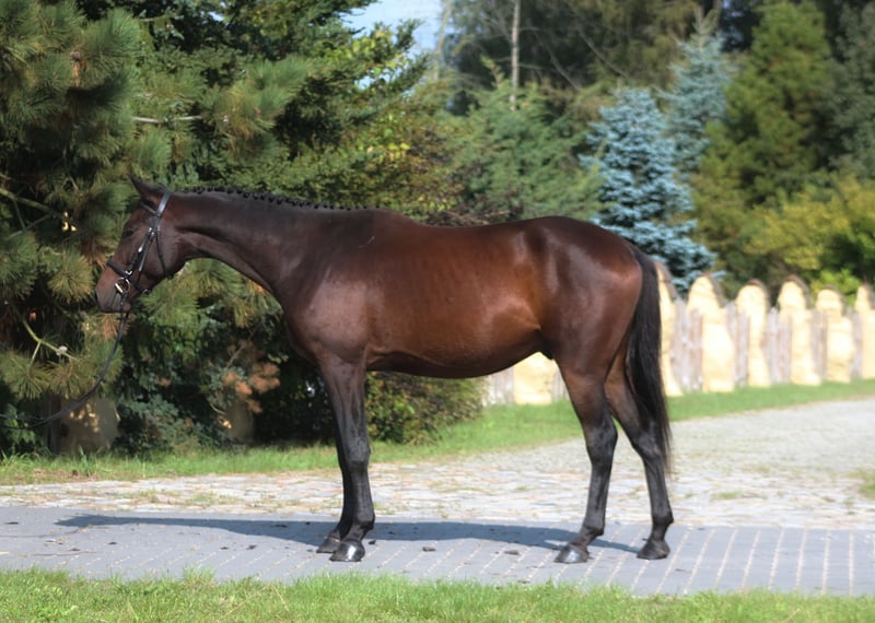 For sale 3, 5 yo beautiful gelding by Emark - amazing black dressage polish stallion, compete in high level. (last picture) Also many more best Anglo Arabian horses in the pedigree, suitable for dressage, eventing or endurance . Grandsire The Anglo Arab stallion All That Jazz was imported to Biddesden from Victoria in Australia as a colt. His sire is the Arab stallion SS City Lights who was bred in the USA and nearly 16 hands. His dam is Belingo, an Australian Thoroughbred by Saulingo. Jazz was always a tall colt with great scope to his stride. He has the softest and springiest of canters as all who have been lucky enough to ride him will attest. He was taken through the ranks to advanced level in British Eventing by William Fox-Pitt and went hunting for a season with the South and West Wilts. His foals have been successful in the show ring and have made a promising start in eventing, with their big strides and elegant steady head positions. Also australian, both arabian and thouroughbred horses are well known and appreciated for their hardness and durability and have achieved many successes in international endurance ! Deeper in his pedigree we find top egyptian bloodlines such as Hadban Enzahi (Mazan), Gharib garis and some top polish bloodlines such as Europejczyk and Palas.. Empire AA is Of exceptional beauty and charizma, long-legged and well built, with elastic and extensive movement. Long neck, beautiful subtle head. Very good topline. He is now 166 cm high at 3,5 yo cm. Lovely, chocolate color ! Born and raised on big meadows, pastured every day with a group of youngsters. Candidate for endurance sport (nearly 50 % arabian blood) for tall rider ! or allround /dressage horse. Dam is endurance horse in Estonia, granddam exported to Dubai , competed in 120 km races . Just has been broken to ride, slowly, easy without pressing and patents. Works in walk and trot. Price + 8% VAT Full papers, e-pass, vaccinated, dewormed etc. Located western Poland near PL/D border . Transport can be arranged . Contact by WhatsApp + 48 513 179 245
