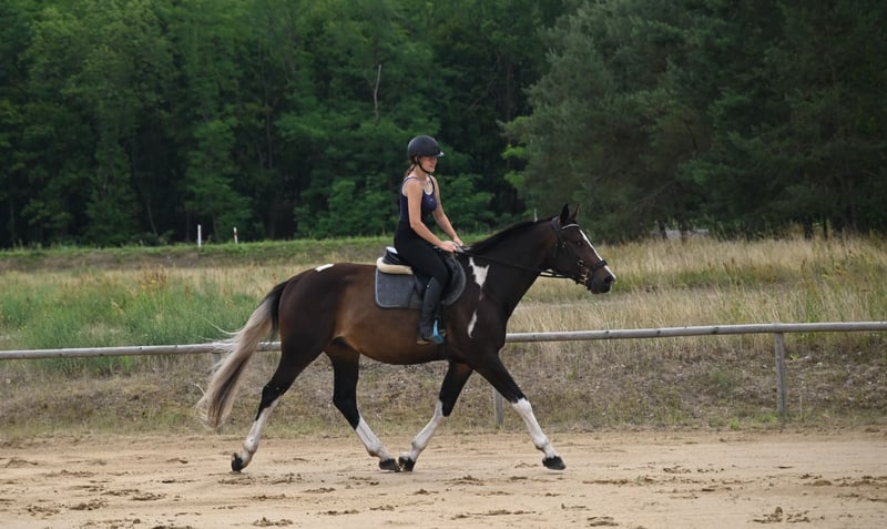 Vendesi bel castrone piebaldino di 4 anni. Alto, con una struttura corretta, con gambe forti e diritte e zoccoli forti e profondi. Splendidamente colorato di piebaldino in una tonalità di cioccolato. Carattere molto calmo e favorevole all'uomo. Coraggioso, disinvolto e tranquillo nel maneggio e sotto la sella. Non è elettrico o eccitabile, è un cavallo che pensa con saggezza, disposto a collaborare con le persone. È stato inizialmente addestrato lo scorso autunno, senza fretta o brevetti. È uscito nei campi. Attualmente temporaneamente non è stato addestrato molto di più a causa del clima invernale. Il cavallo mostra grandi predisposizioni al salto e un'ottima tecnica. Buon movimento, galoppa molto bene. Grande pedigree di salto da cavalli polacchi angloarabi: Padre Jaśmin: Estremamente bello, di corporatura corretta, dotato di ottimo movimento e tecnica di salto. Il cavallo è caratterizzato da una buona salute, temperamento equilibrato è alle prove di vice-campione nel 2010, che ha superato con un ottimo risultato. Il cavallo è diventato vice-campione e medaglia d'oro del campionato nazionale nel 2011. Jaśmin proviene dalla linea femminile molto distinta della cavalla Śmigła, da cui sono nati cavalli come: Jard: IV posto ai Campionati tedeschi di equitazione 2022, Jaskinia: II posto al campionato polacco di classe C 2004, Jamajka: IV posto al campionato polacco di classe C 2008. Nonno Frazes (Livello 150 cm) Stallone anglo-arabo allevato e di proprietà di State Stud. Da giovane, questo ottimo saltatore è stato sottoposto a un addestramento sportivo sia per gli eventi che per il salto ostacoli. Nel 2003 ha vinto il titolo di Campione polacco dei giovani cavalli da gara nella categoria dei quattro anni. Nel 2004 si è classificato 12° (su 66 cavalli in gara) ai Campionati polacchi di salto dei giovani cavalli nella categoria dei cinque anni, commettendo un solo errore durante i tre giorni di gara. Nel 2006 si è classificato 5° ai Campionati polacchi di salto nella categoria dei sette anni. La progenie di Frazes si è presentata positivamente ai Campionati Nazionali Giovanili dei Cavalli Małopolska(angloarab) a Białka e (generazioni più anziane) allo Stabilimento di Addestramento. Due figlie della prima generazione giovanile di Frazes hanno ottenuto un ottimo punteggio e si sono piazzate ai primi due posti nelle prove di performance nel 2009. Nello stesso anno, il figlio di Frazes, Dionizos, ha vinto la prova di performance dello stallone a Bogusławice con un punteggio eccellente e un anno dopo Jaśmin si è piazzato al secondo posto, ottenendo anche lui un ottimo punteggio. Nel 2010 Frazes è stato affittato per alcuni mesi in Francia. Nel pedigree troviamo anche l'eccezionale stallone Arcus xx (livello 160 cm) e gli stalloni Sebastian (140 cm), Paszkwil, Agrest... Un futuro cavallo sportivo in un bellissimo colore insolito. Altezza attuale 166 cm, obiettivo ca. 168/9 cm Sano, gestito, ben curato, alimentato con mangimi di alta qualità, quotidianamente in paddock con un gruppo di amici. Situato a 50 km dal confine PL/D. Il trasporto può essere organizzato. Maggiori informazioni su WhatsApp + 48 513 179 245