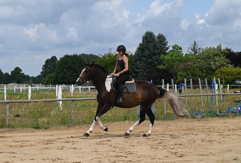 À vendre : Poney alezan piebald de 4,5 ans, très joli. Grand, de type framé, construit de manière correcte, avec des jambes droites et solides, ainsi que des sabots profonds et robustes. Coloration magnifique en piebald dans une teinte chocolat. Caractère très calme et pro-humain. Courageux, facile à manipuler et calme en selle. Il n’est ni électrique ni excitable, c’est un cheval réfléchi, sage, et coopératif. Dételé pour la première fois l’automne dernier, sans précipitation ni pression. Travaille en manège et en extérieur. Très agréable et facile à monter, brave et non peureux. Sûr en trafic, avec les chiens, voitures, etc. A effectué sa première sortie de deux jours en randonnée, avec succès ! Montre de grandes aptitudes au saut d’obstacles et une technique très correcte. Bon mouvement, il galope agréablement. Actuellement mesuré à 168 cm, taille finale estimée à environ 169/170 cm. Excellent pédigrée de saut d’obstacles, issus de chevaux anglo-arabes polonais : Père : Jaśmin Cheval extrêmement beau, de construction correcte, doté d’un très bon mouvement et d’une technique de saut remarquable. Cheval en excellente santé, au tempérament équilibré. Vice-champion des tests en 2010, qu’il a passés avec d’excellents résultats. Vice-champion et médaillé d’or au championnat national en 2011. Jaśmin provient d’une lignée féminine très prestigieuse, celle de la jument Śmigła, dont sont issus notamment : - Jard : 4e place aux Championnats d’Allemagne de concours complet 2022 - Jaskinia : 2e place au championnat polonais C en 2004 - Jamajka : 4e place au championnat polonais C en 2008 Grand-père : Frazes (niveau 150 cm) Étalon anglo-arabe, élevé et propriété du Haras d’État. En jeune cheval, ce très bon sauteur a été entraîné aussi bien en concours complet qu’en saut d’obstacles. En 2003, il a remporté le titre de Champion de Pologne des Jeunes Chevaux de saut en catégorie quatre ans. En 2004, il s’est classé 12e (sur 66 chevaux) au Championnat de Pologne des Jeunes Chevaux de saut, avec une seule erreur en trois jours de compétition. En 2006, il a terminé 5e au Championnat de Pologne de saut en catégorie sept ans. Il a concouru avec succès de 2007 à 2009. Les descendants de Frazes ont obtenu de bons résultats lors des Championnats Nationaux de Jeunes Chevaux en Małopolska (anglo-arabe) à Białka, ainsi que lors de stages d’entraînement. Deux filles issues de la première génération de jeunes par Frazes ont reçu une très bonne note et ont occupé les deux premières places aux tests de performance en 2009. La même année, le fils de Frazes, Dionizos, a remporté le test de performance pour étalons à Bogusławice avec d’excellentes notes, et un an plus tard, Jaśmin s’est classé 2e, également avec une très bonne note. En 2010, Frazes a été loué pour plusieurs mois en France. Dans le pedigree, on trouve également l’étalon exceptionnel Arcus xx (niveau 160 cm), ainsi que les étalons Sebastian (140 cm), Paszkwil, Agrest, etc. Un cheval très prometteur pour le sport, avec une belle couleur inhabituelle. Saut libre jusqu’à 145 cm, sous la selle jusqu’à 80 cm, en raison de son jeune âge. En bonne santé, actif, bien entretenu, nourri avec une alimentation de haute qualité, quotidiennement au paddock avec un groupe d’amis. Prix + 8 % TVA Situé à 50 km de la frontière polonaise / allemande. Transport possible. Plus d’informations via WhatsApp : +48 513 179 245