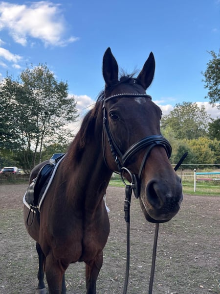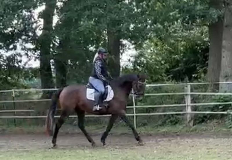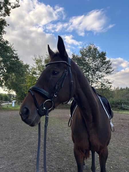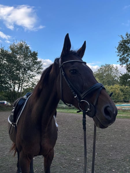For sale is a 20-year-old brown mare. She has a height of approximately just over 1.60m. A few weeks ago, we started retraining her after about a year off from riding (due to the owner's illness). Super nice horse, very light to the aids, can be ridden with "a little finger," with a healthy go, not suitable for beginners. Currently, she has some balance issues in the canter due to not having fully rebuilt her musculature yet. However, with some training, this will surely not be a problem for long. Very people-oriented, she enjoys attention and loves to be cuddled. She stands very calmly at the grooming area and loves to be pampered. We wish for her a great home as a companion or also as a riding horse in leisure activities with a more experienced rider. According to the previous owner, the mare has already had 5 or 6 foals, pedigree see photos. We vaccinated her once last month (influenza and tetanus). Her hooves have been freshly done, she was last dewormed in May, and her teeth are in good condition, having been done in January. She is currently still on pasture 24/7 and is also familiar with being in a stable at night. We are not aware of any illnesses, and she has not shown any unusual behavior with us so far. Price is negotiable, perhaps the right person for this wonderful mare will be found here. The mare is sold privately, without warranty and excluding any liability for defects.